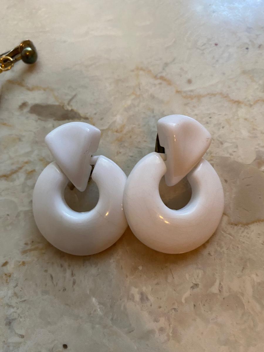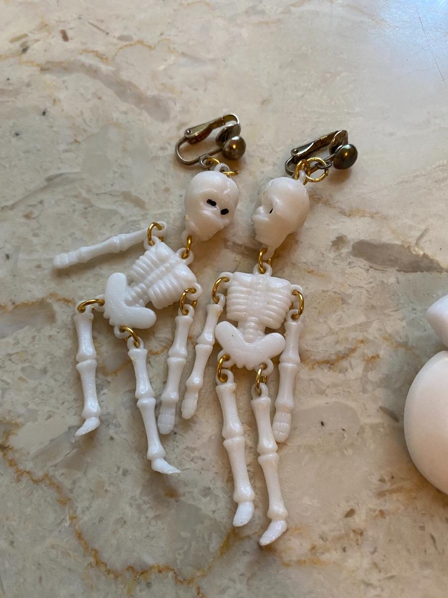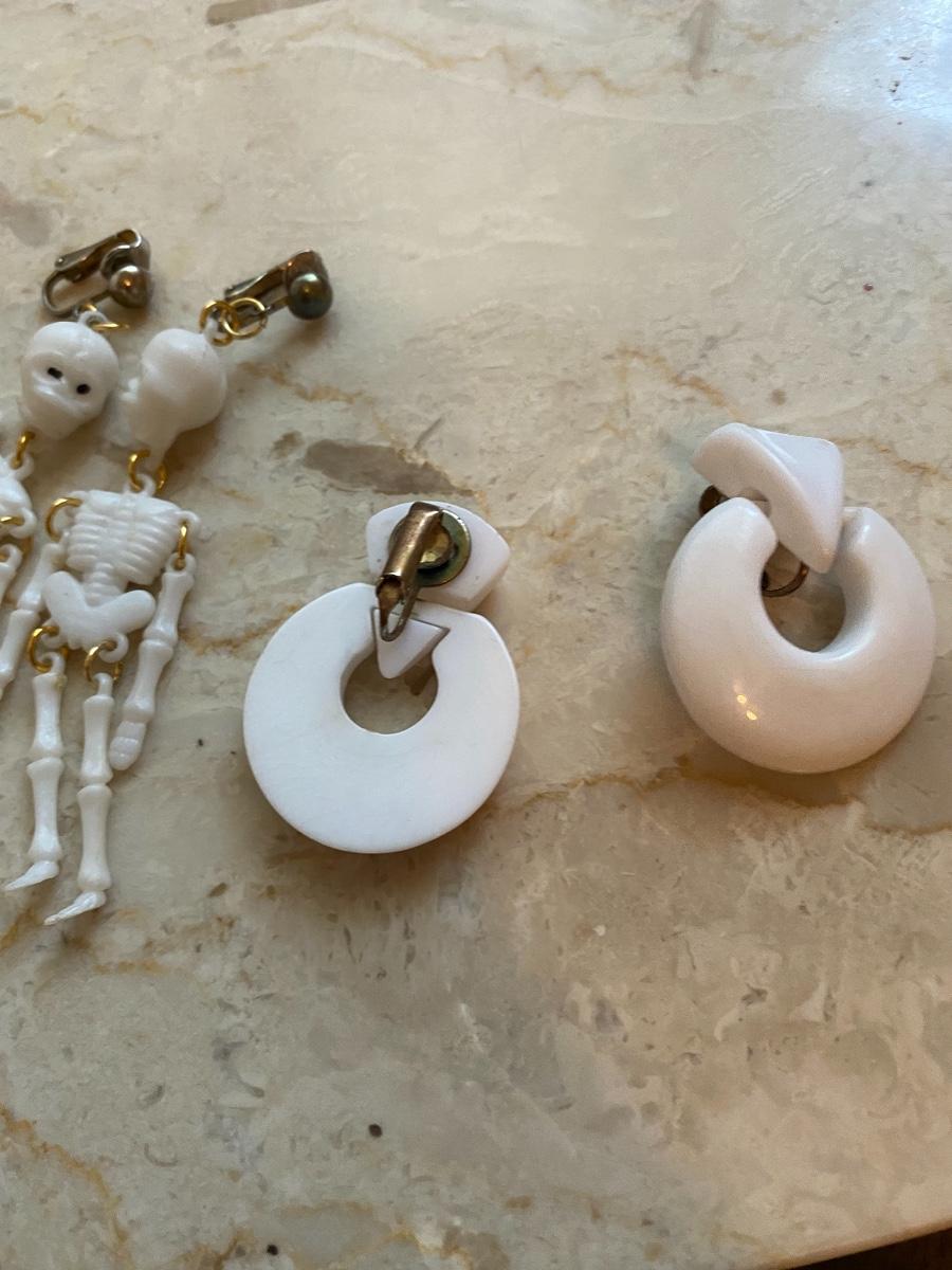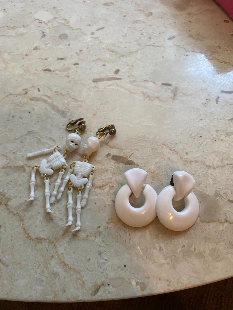 Two Pairs of Clip Style Earrings. Retro white and Halloween Skeletons.