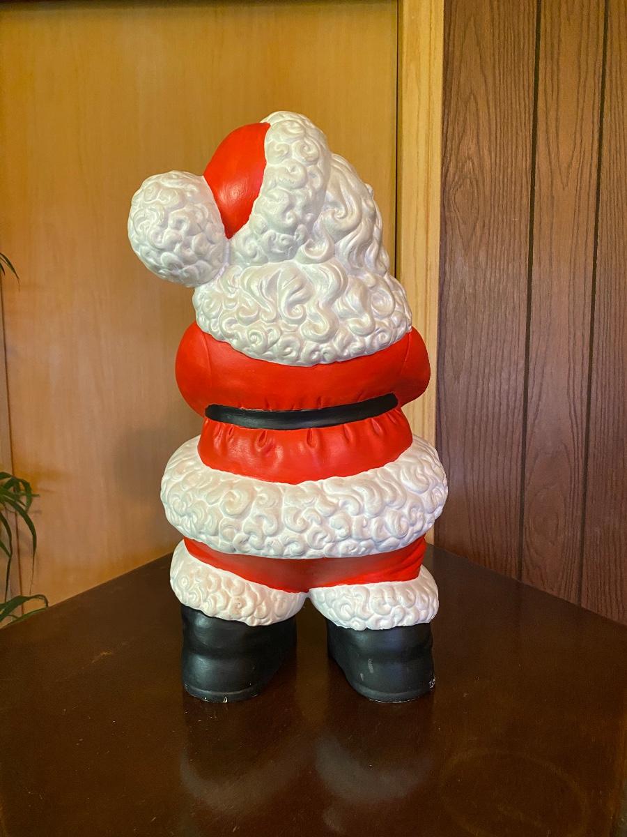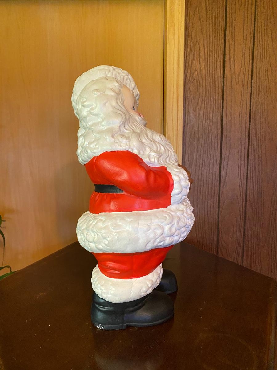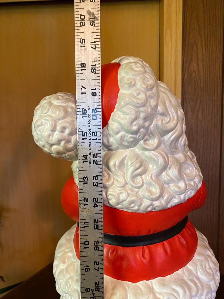 Vintage Santa Claus St. Nick Statuette Figurine. Unbranded or no marks, but looks to be from Atlantic Mold. Boot has a chip that was painted to match so it does not stand out to much. Good size, about 19" tall.