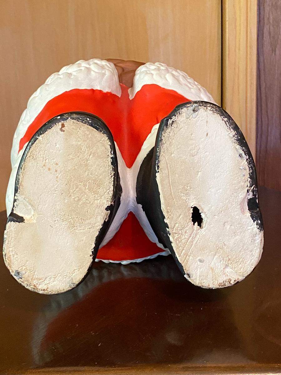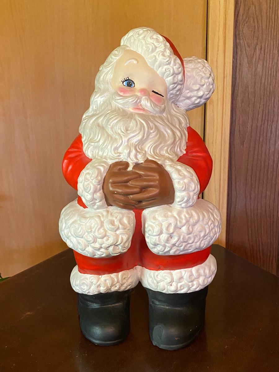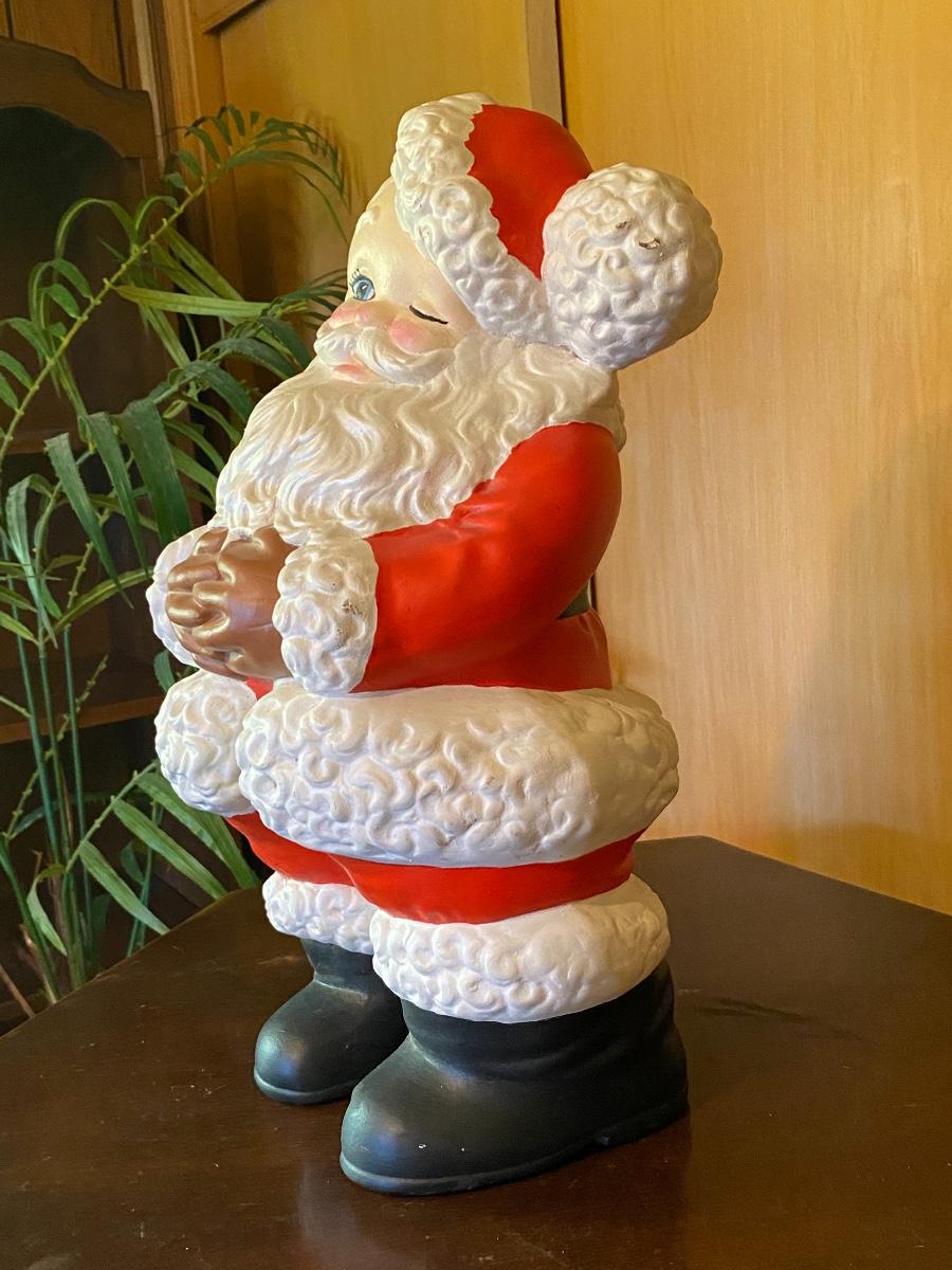Vintage Santa Claus St. Nick Statuette Figurine. Unbranded or no marks, but looks to be from Atlantic Mold. Boot has a chip that was painted to match so it does not stand out to much. Good size, about 19" tall.