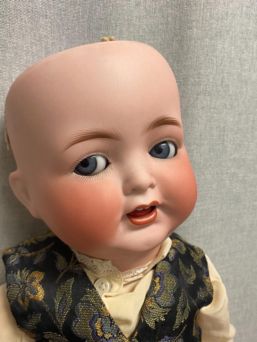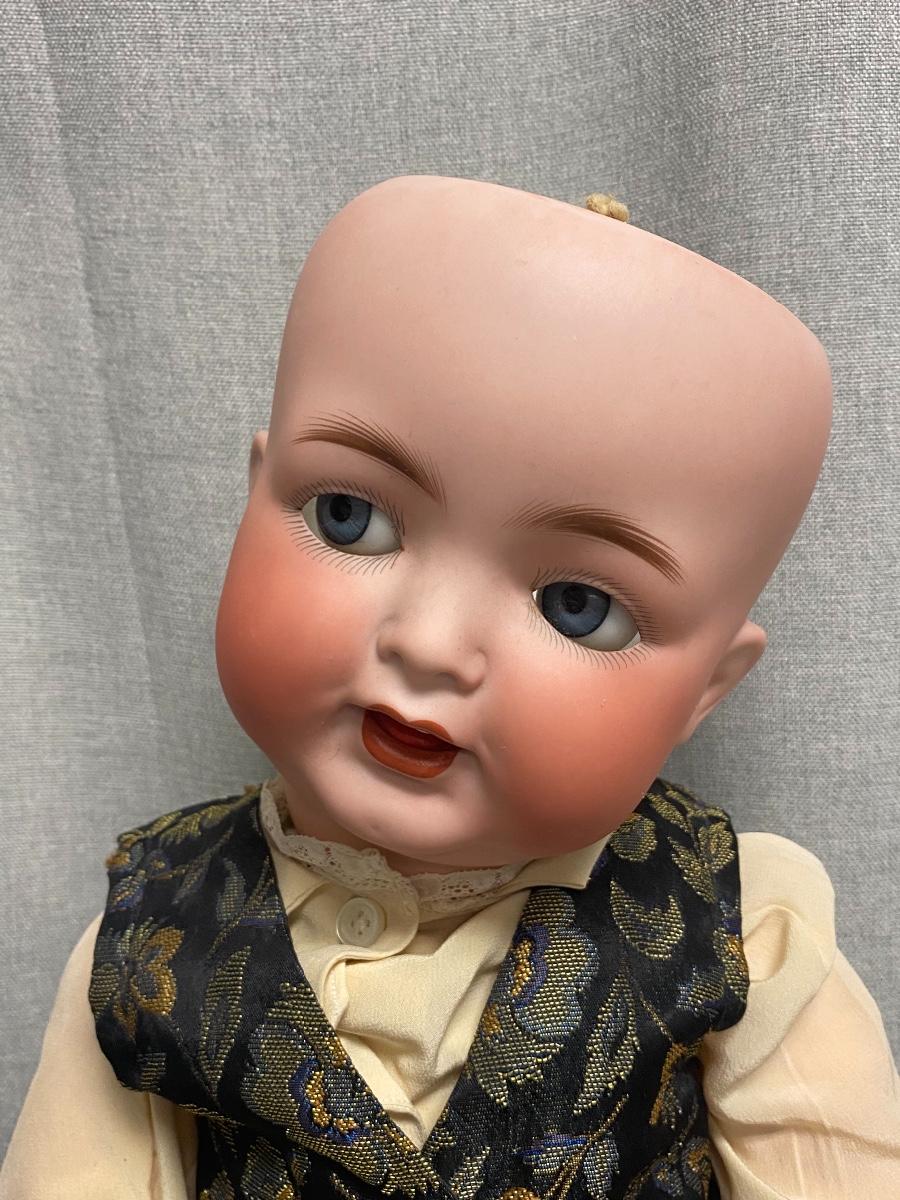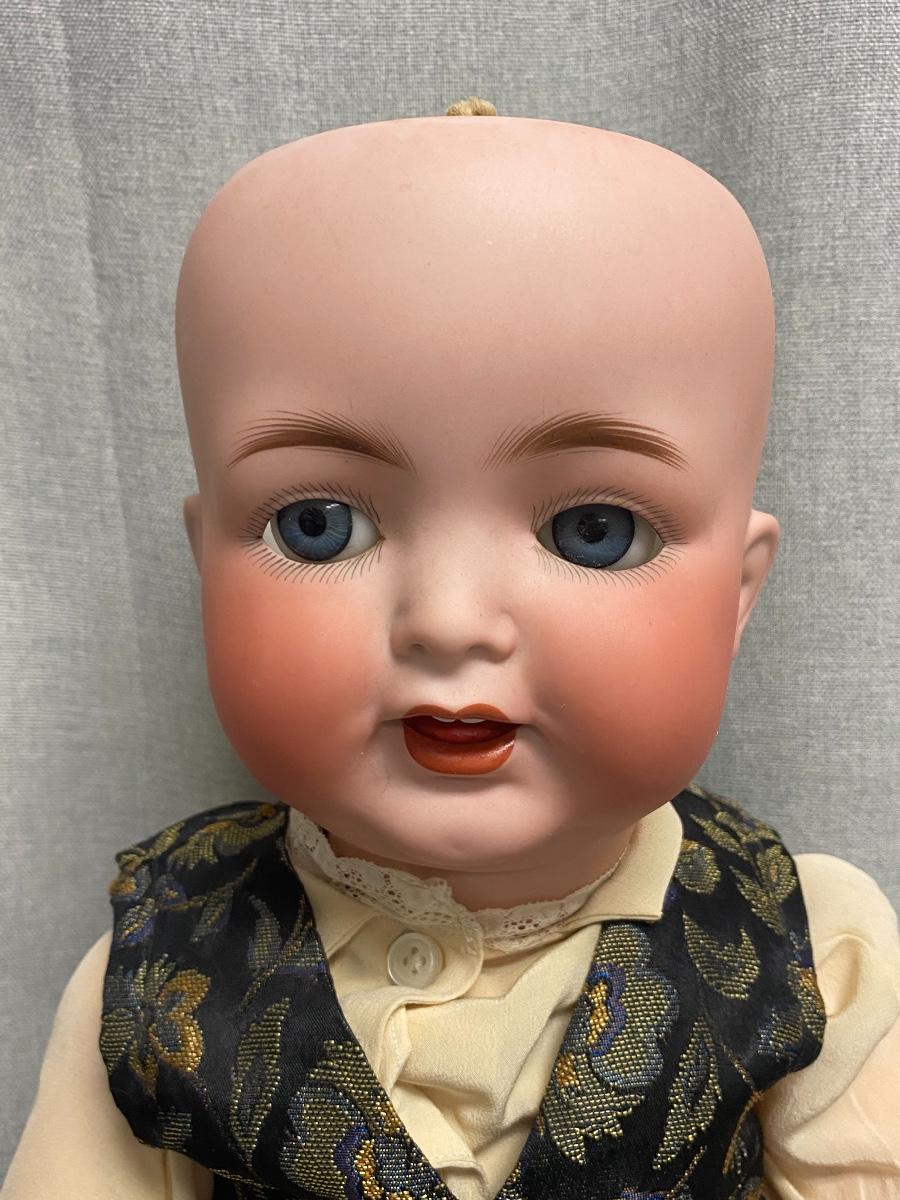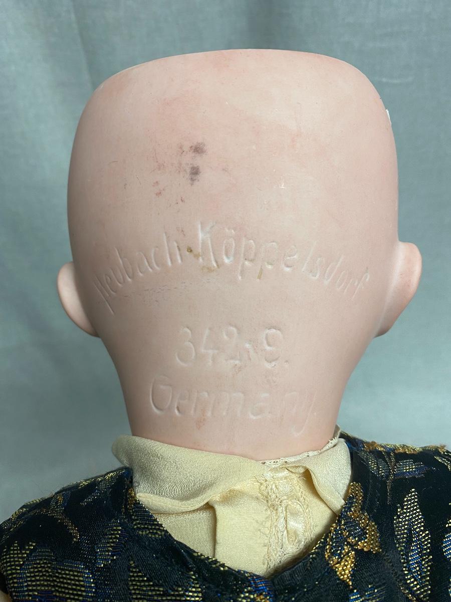 Cute Heubach Koppelsdorf 342.9 boy doll. Working sleepy flirty eyes. No wig or pate, not sure what happen to them. In good condition. About 24" size. Great face.