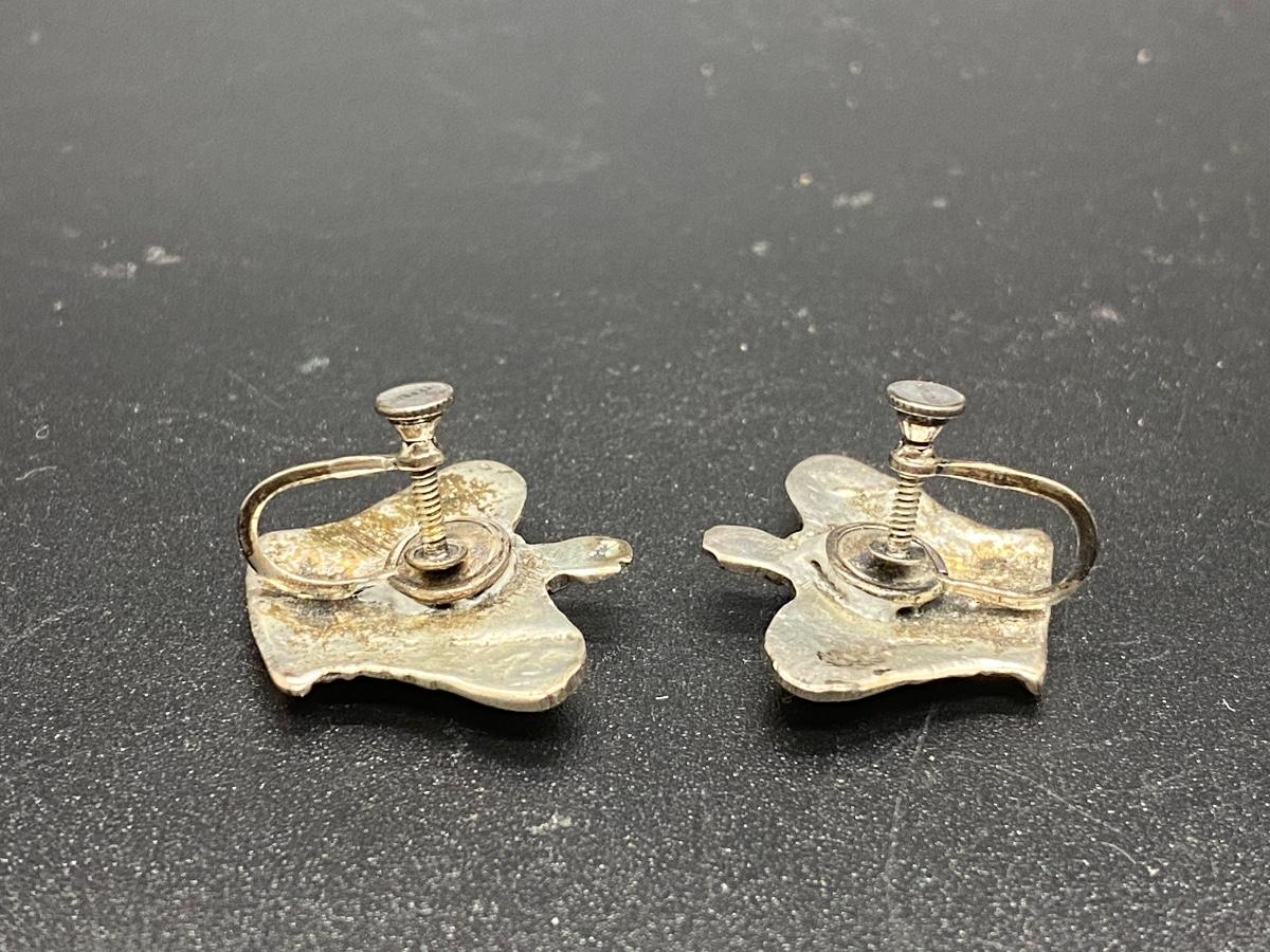 Vintage pair of sterling silver screw back earrings. Shaped like a queen's crown. Hollow sterling, marked on the screw post. About 3/4" size.
