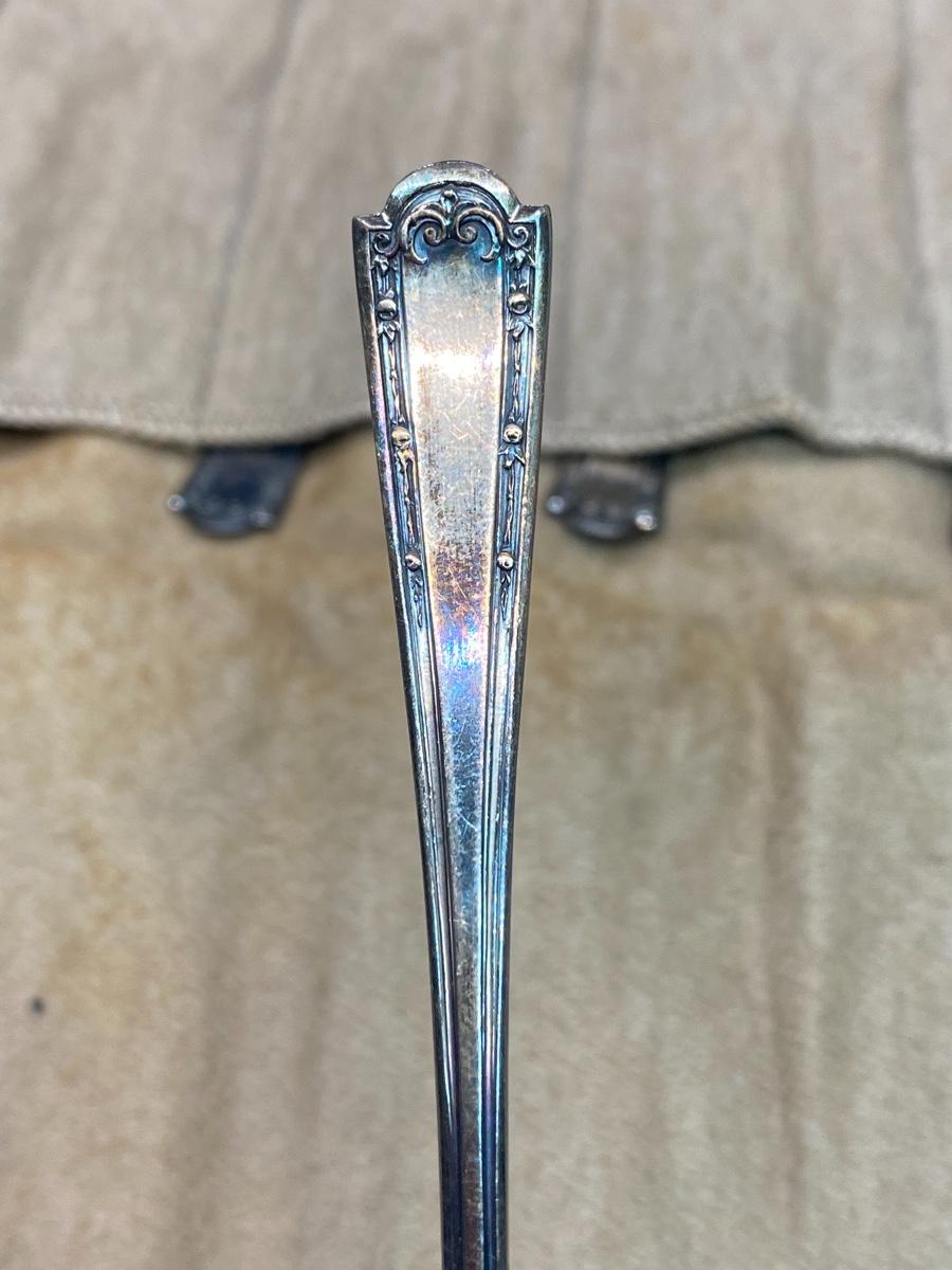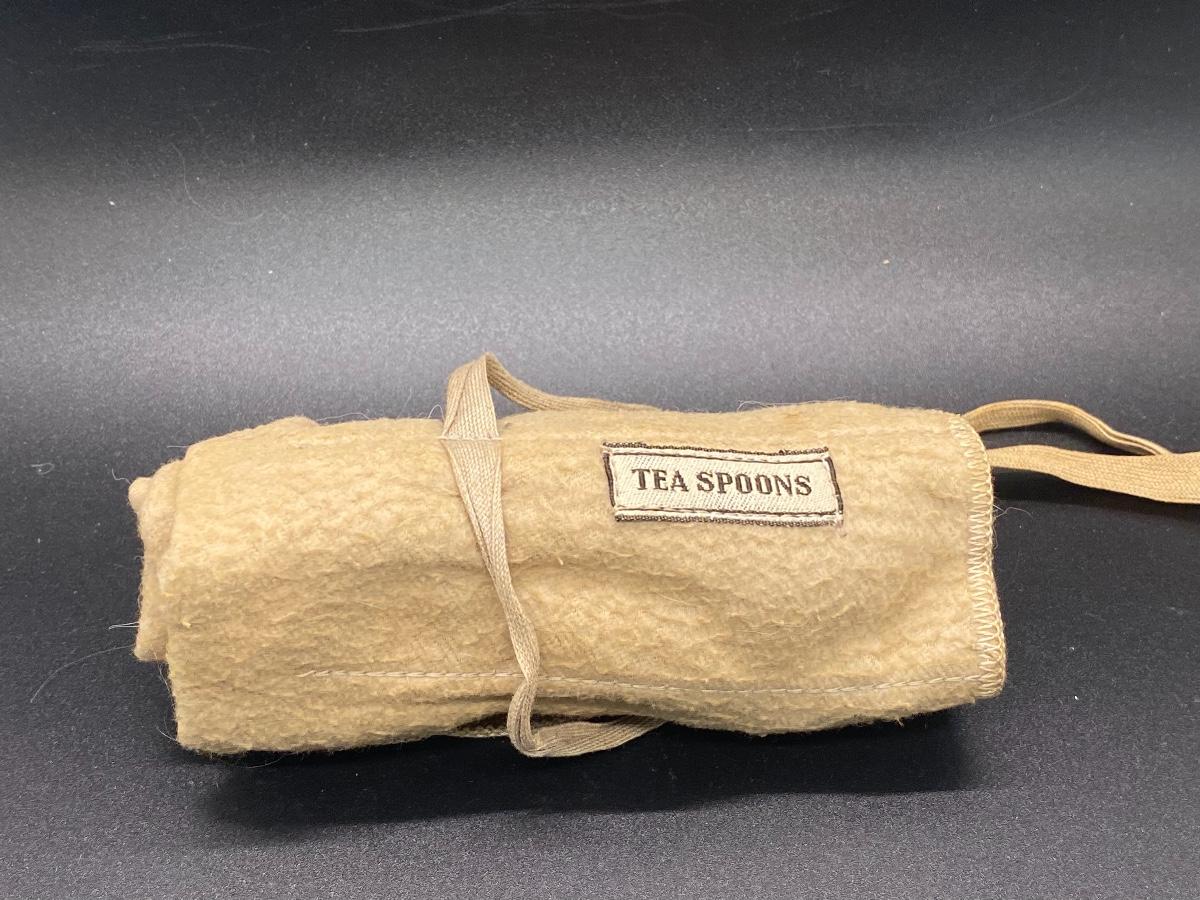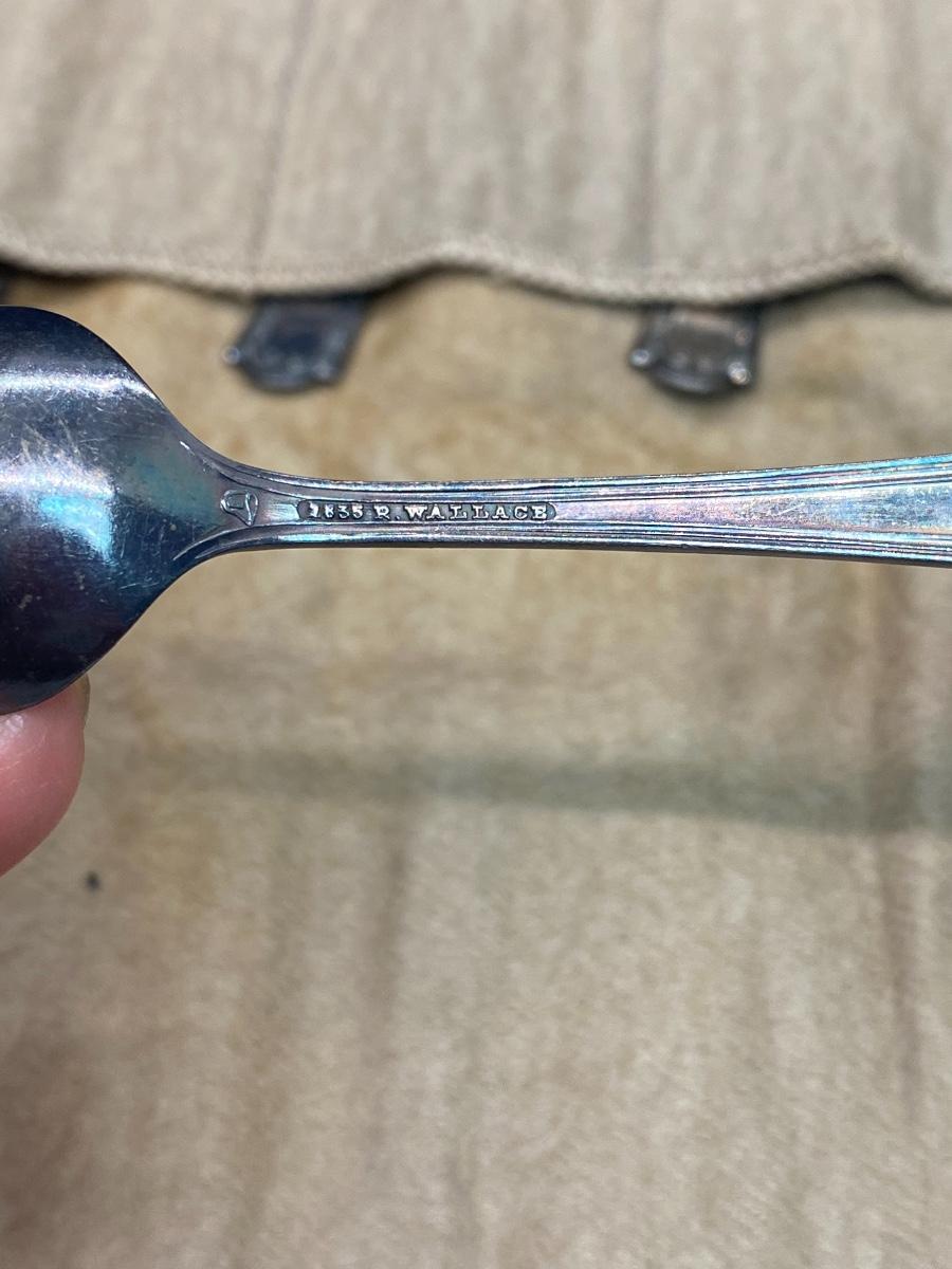 Set of 6 Vintage Pattern Plated Tea Spoons with Cloth Storage. No sterling marks, look like silver plate, made by Wallace.