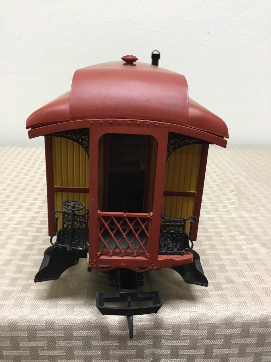 In good, gently used condition. There might be a minor scratch or missing a tiny piece of railing, but nothing of any consequence - please check photos carefully though. We might be able to find the original box and we will send it with this train if possible. Measures roughly 19" x 5" x 7"
