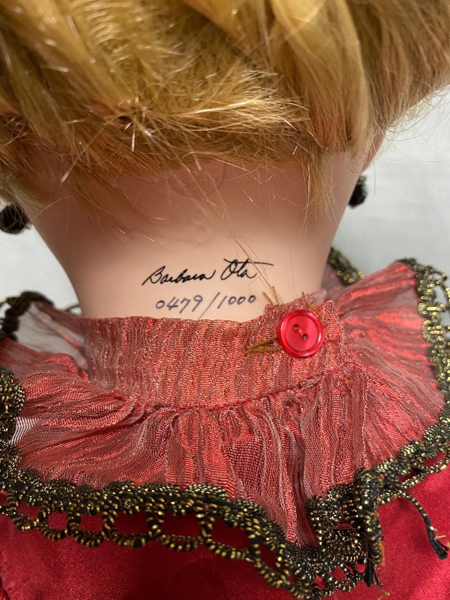 Limited edition Barbara Ota porcelain and cloth doll. Large about 30" doll. Beautifully done and styled. Numbered on neck #479/1000.