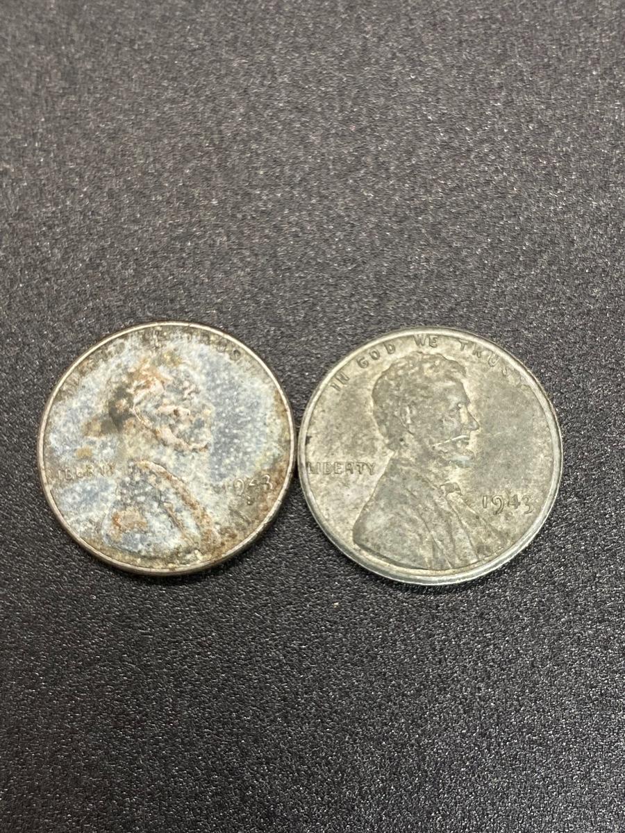 Vintage Pair of 1943 Steel Lincoln Pennies US Coins