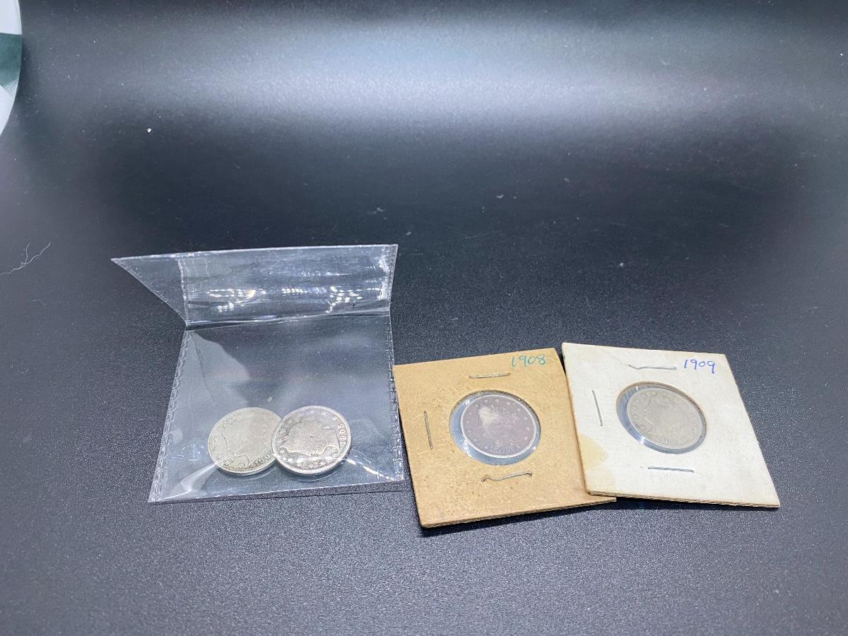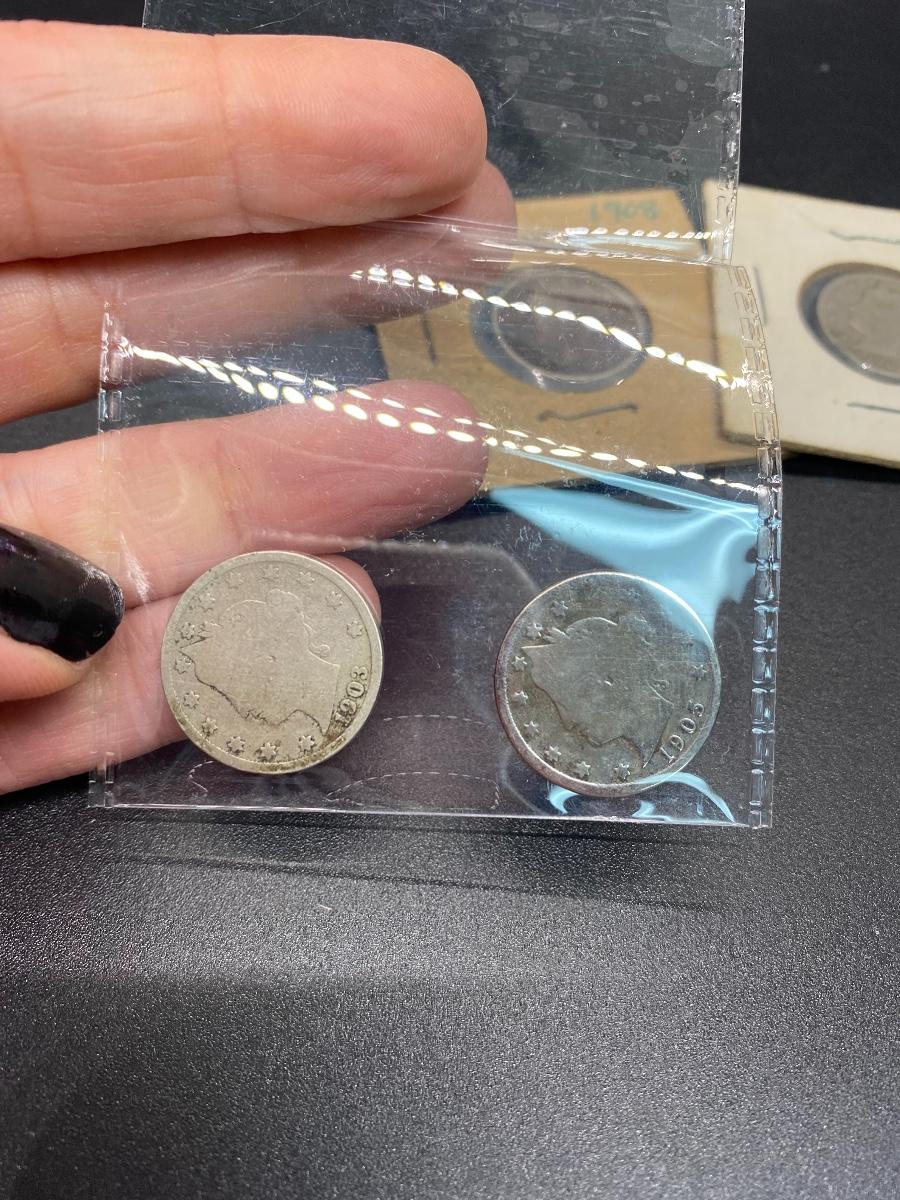 Set of 4 Antique 1900s Liberty Head V Cent Nickels