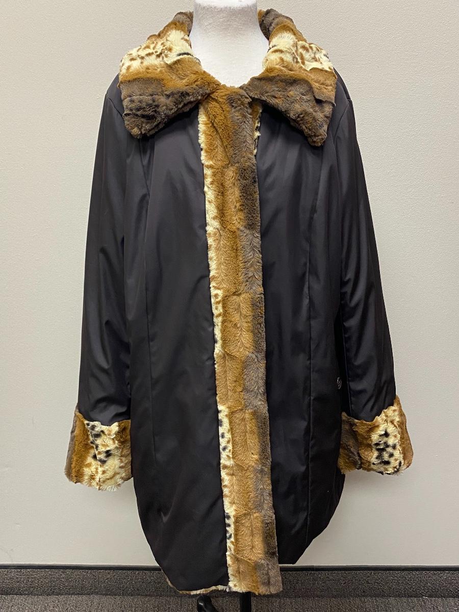 Reversible Faux Fur Coat Rain Jacket Dennis Basso Size 1X