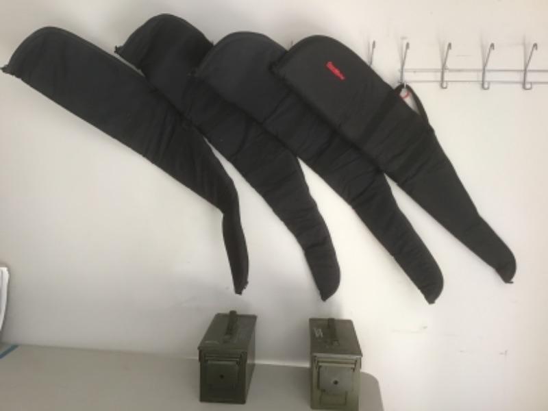G - 686  ( 4 ) Gun Mate Rifle Covers & 2 Vintage Metal Ammo Boxes