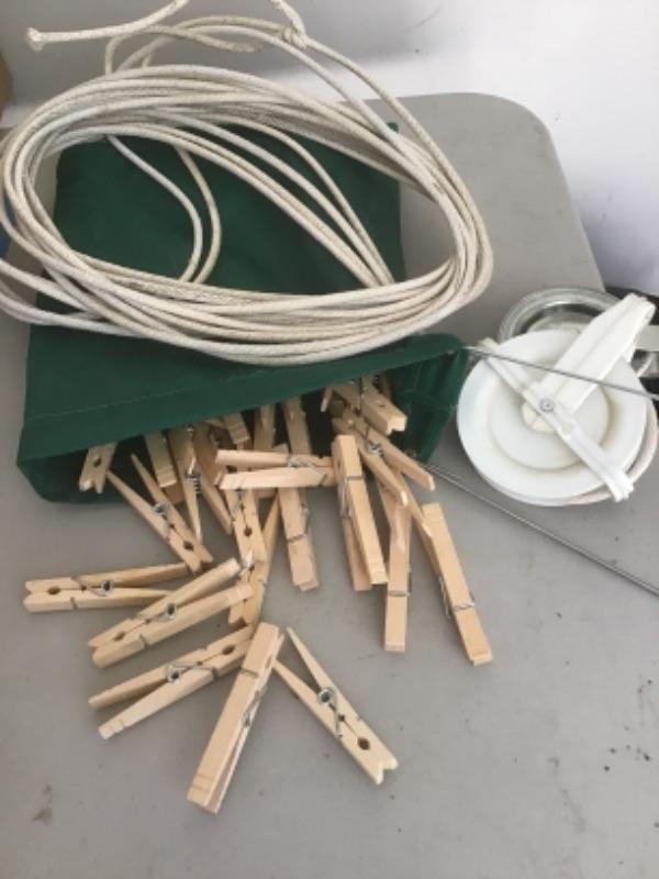 G - 696. Pulley Style Clothes Line & Clothes Pins/Bag