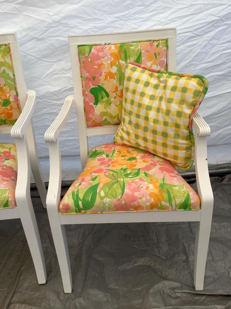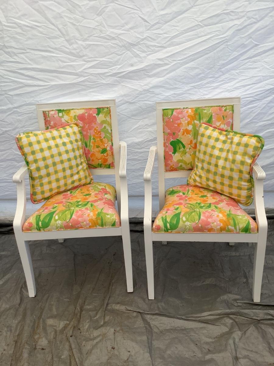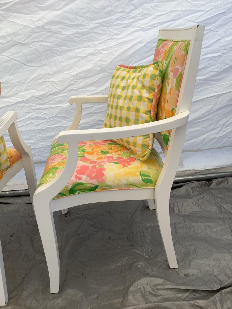 Pair Of Custom Upholstered Wooden Arm Chairs