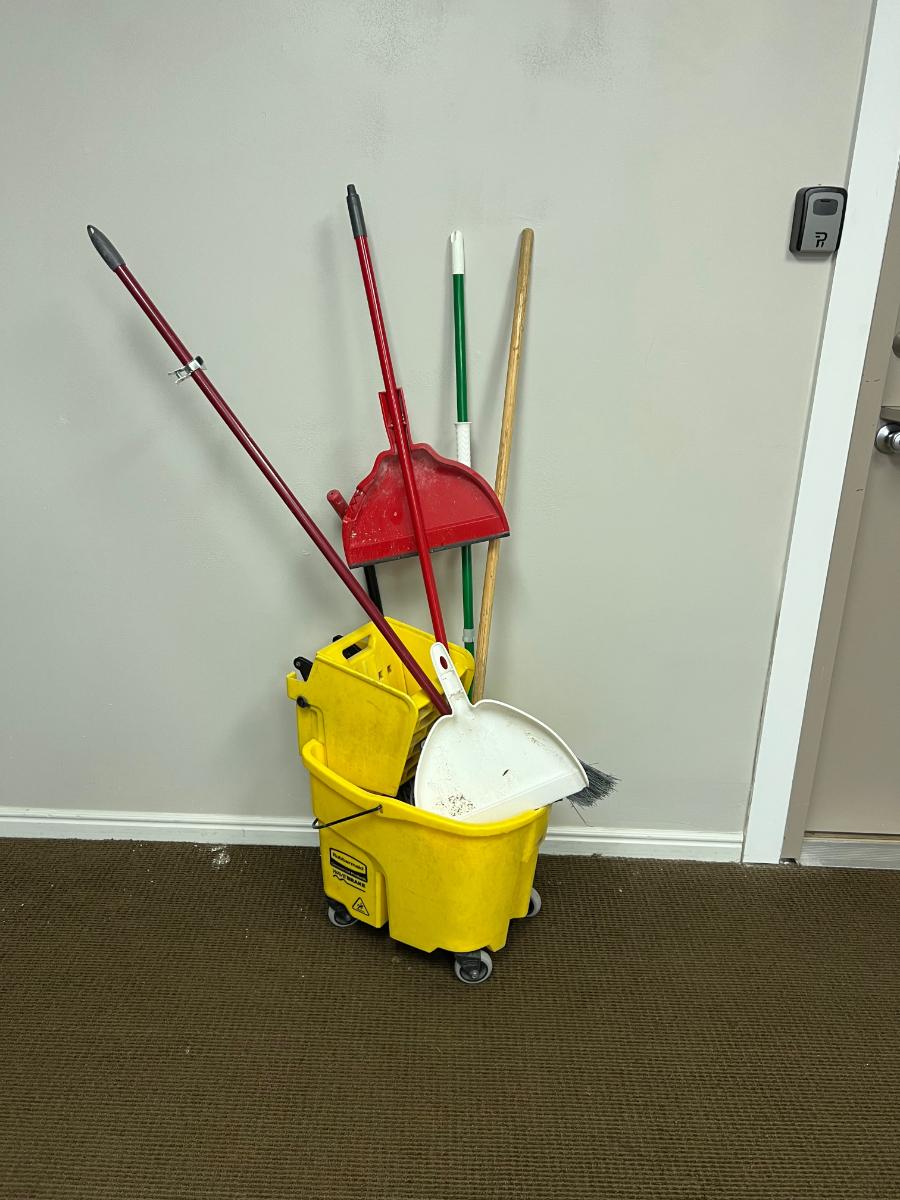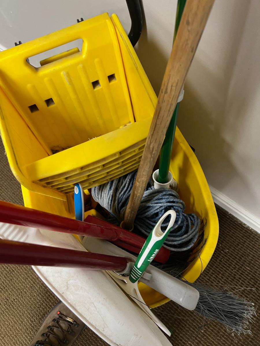 G  All the Mops, Bucket on wheels, Brooms etc.