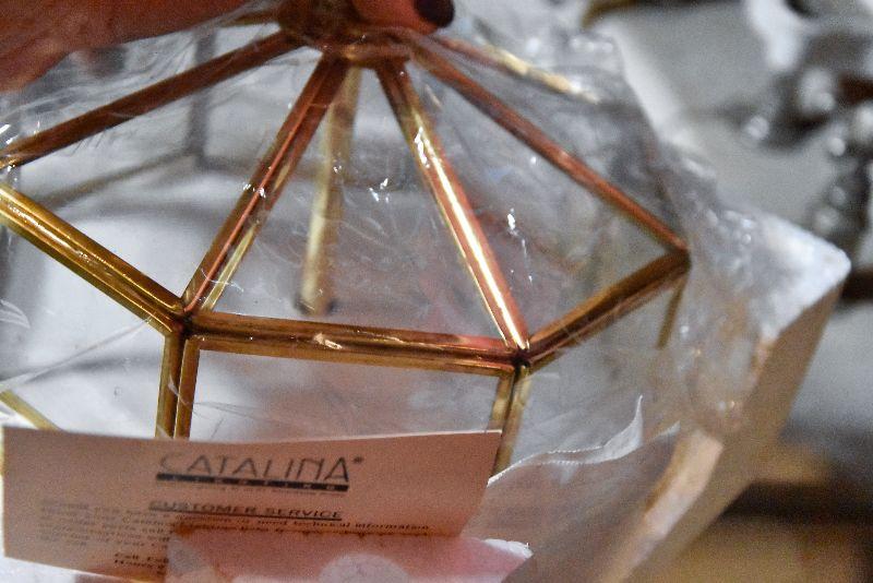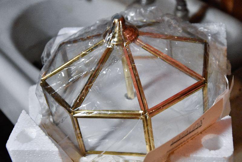 Glass and brass light, new, in original box. Untested