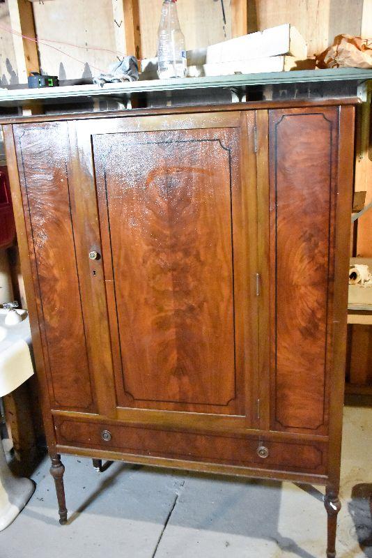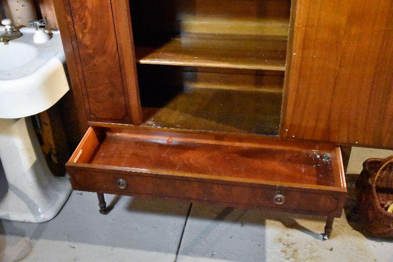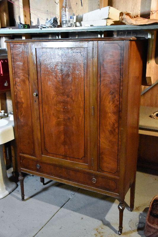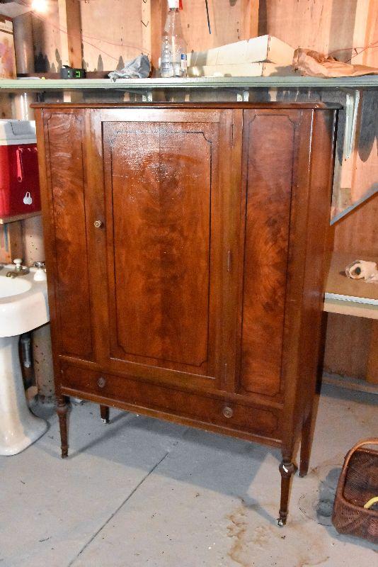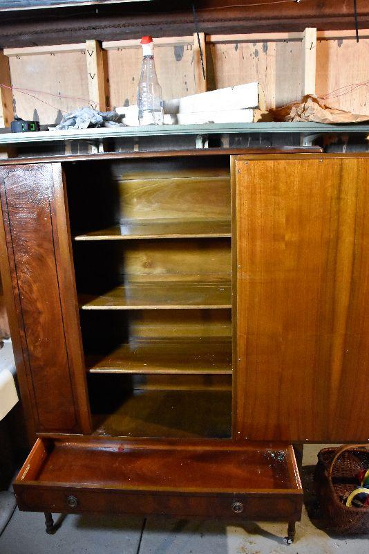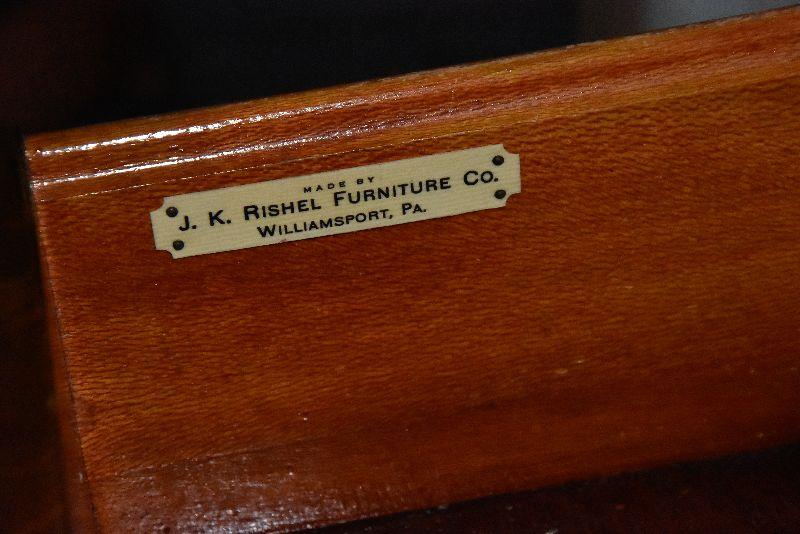 J. K. Rishel Furniture Co. is the maker of this beautiful cabinet. Plenty of storage inside plus a drawer. Bring help to move from basement.