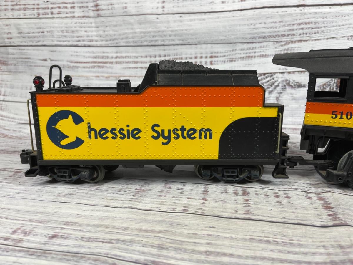 Lionel Trains G scale Chessie System 4-4-2 #5106 steam locomotive and tender.