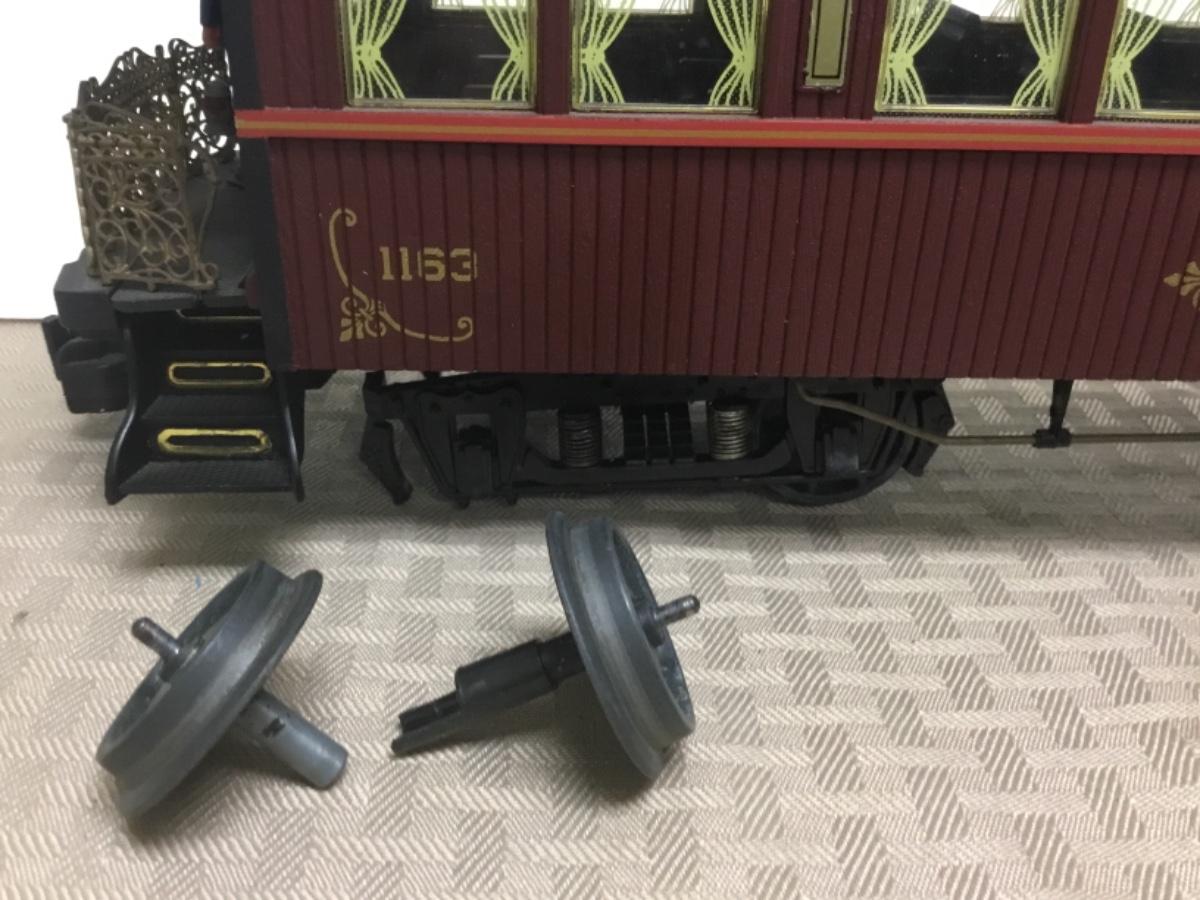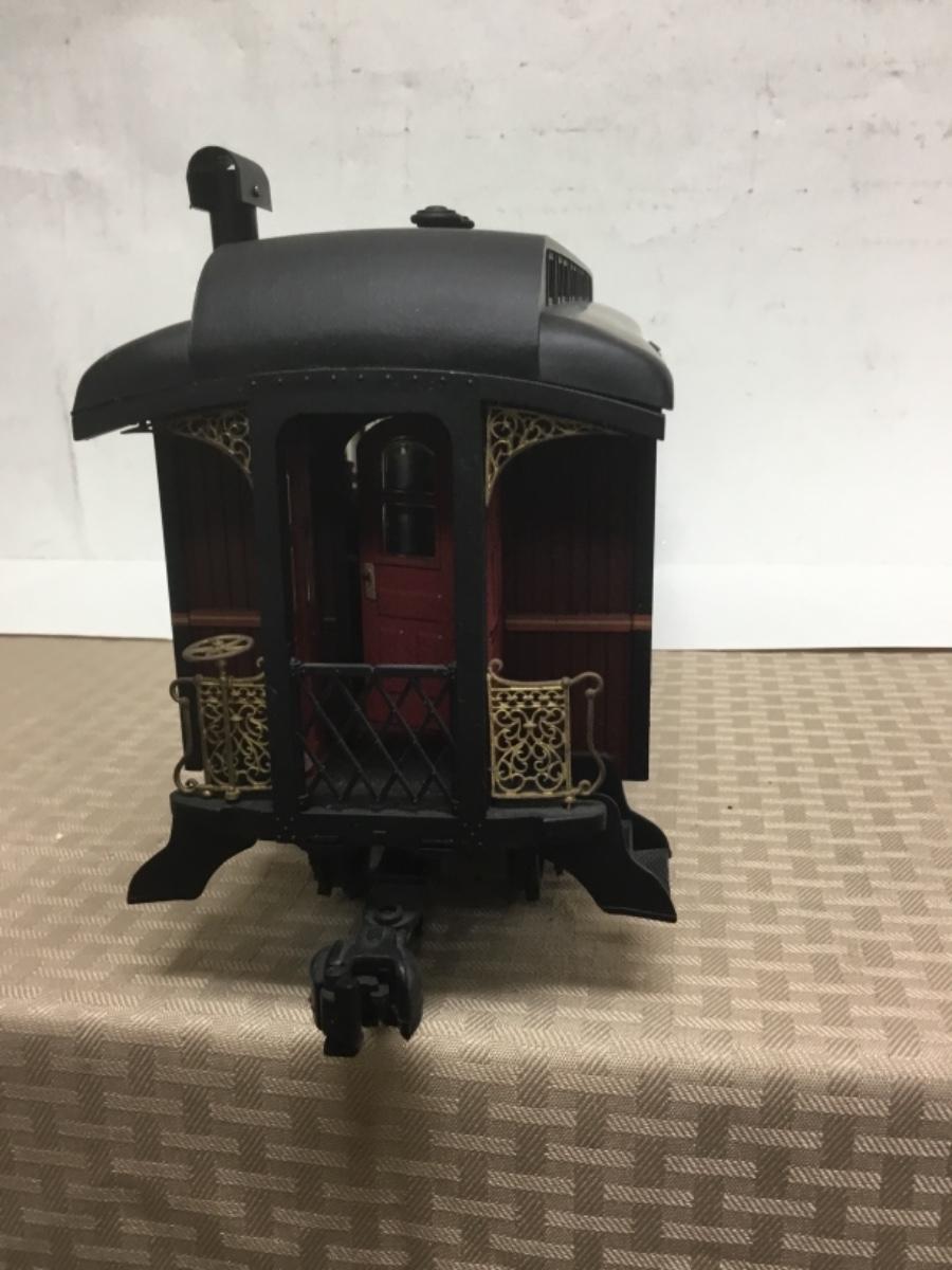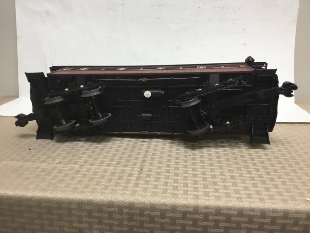 Wood/Sierra style car w/clerestory windows, extra couplers. Note broken axle.