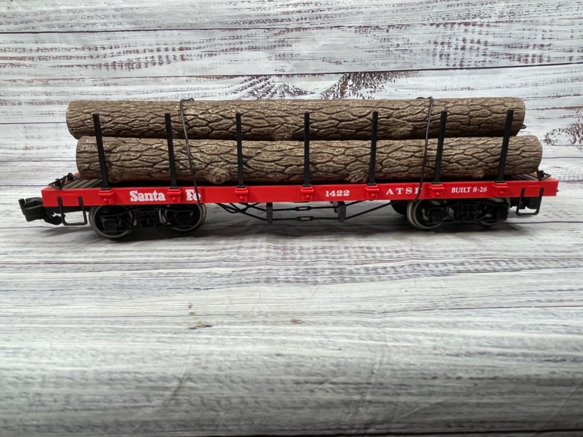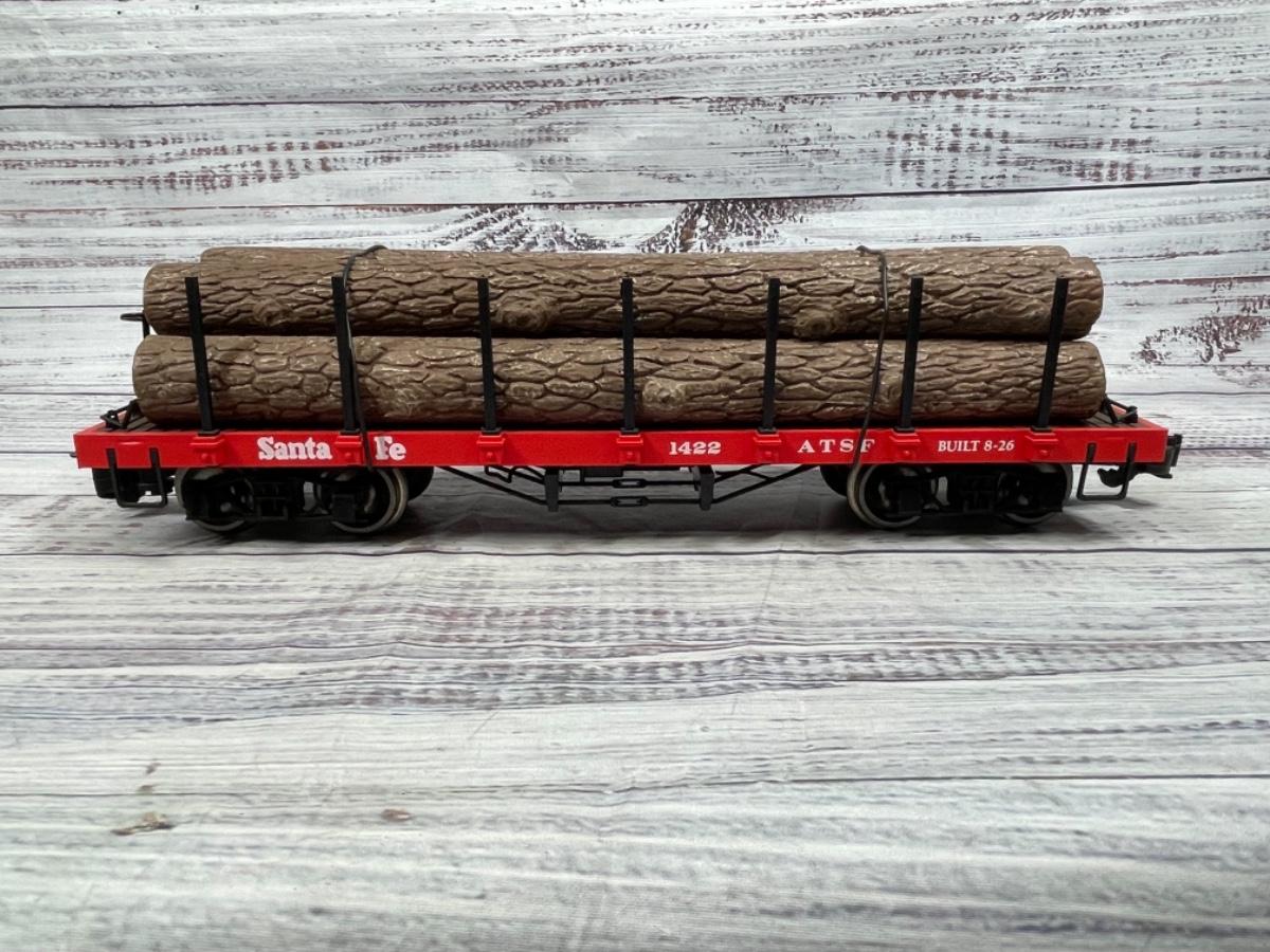 Bachmann G scale Santa Fe flat train railroad car w/logs