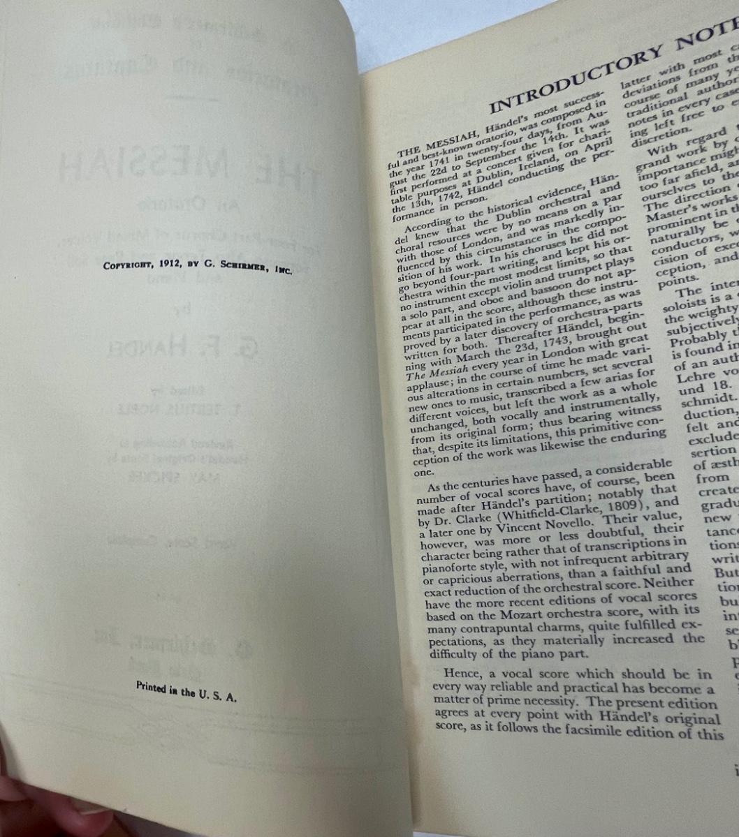 G. Schirmer's Editions of Oratorios & Cantatas 1912 The Messiah G.F. Handel