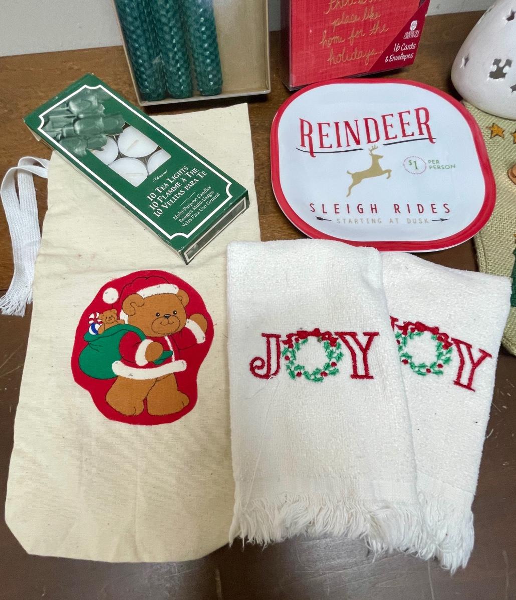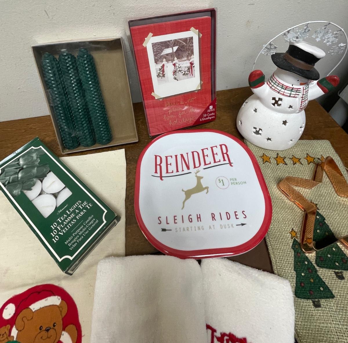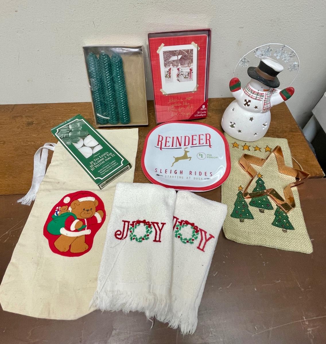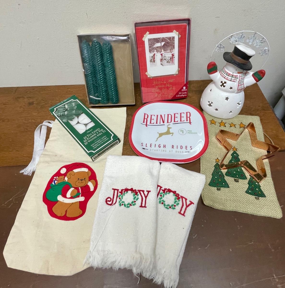 Christmas Home DECOR LOT - Guest Towels, Candles, plate, cards, etc