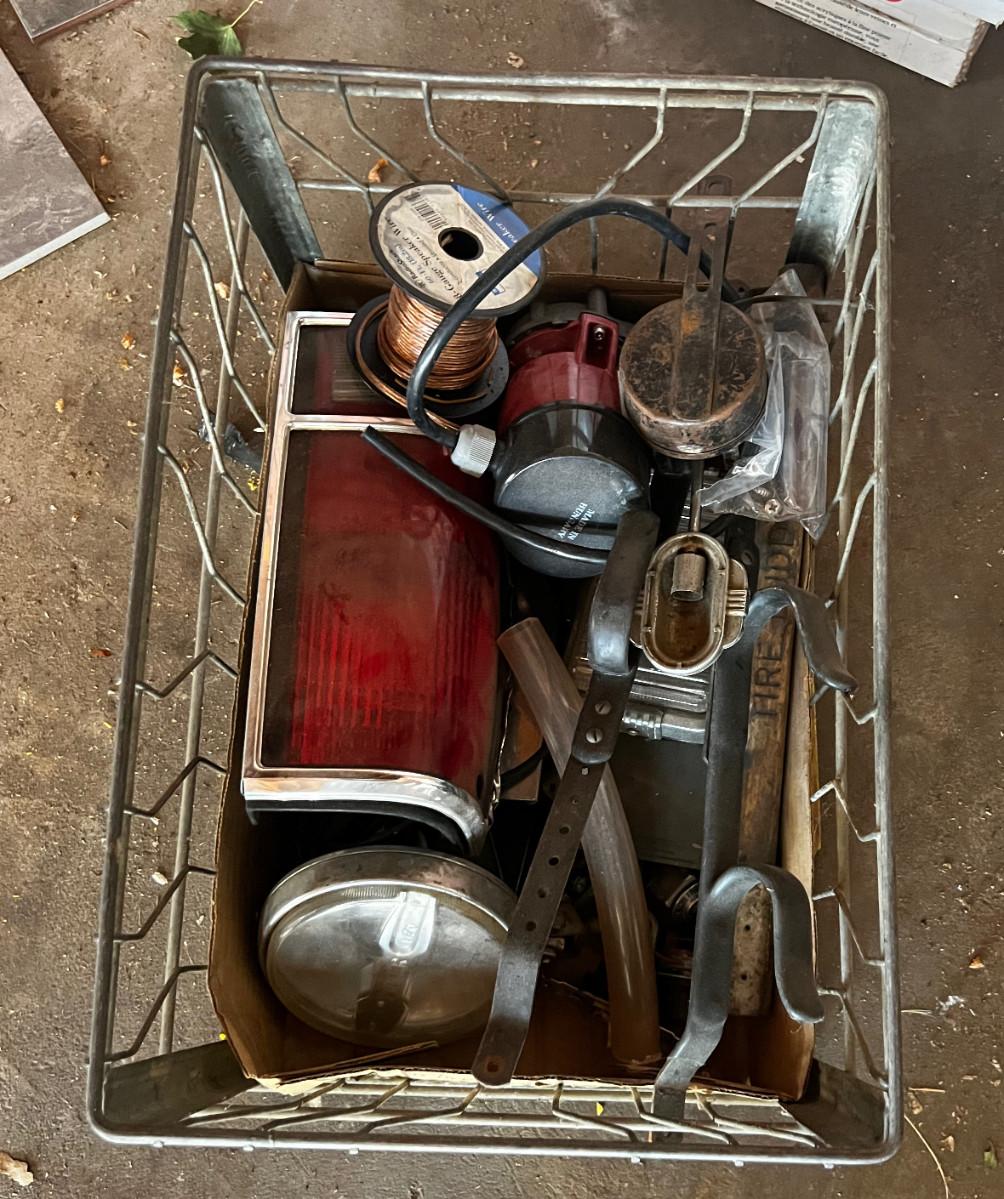 G Wire Crate Full of Car Parts