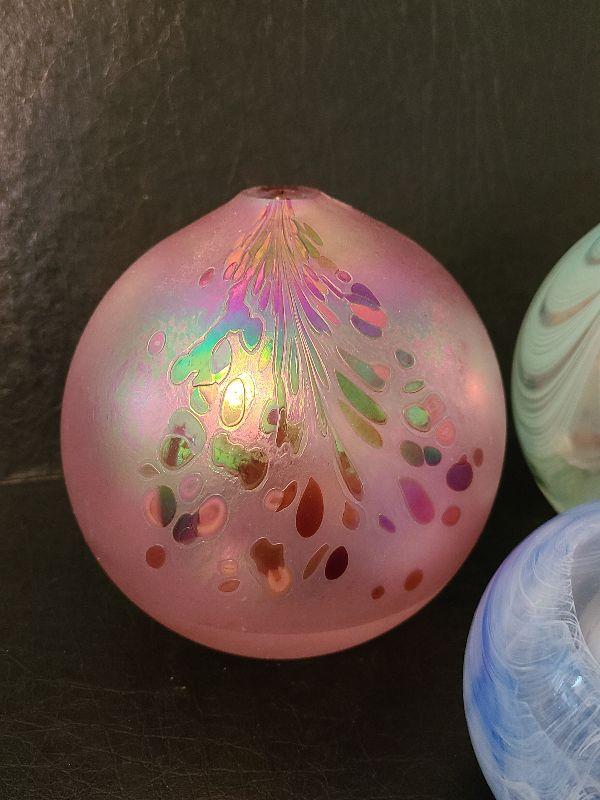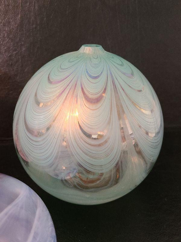 Beautiful iridescent oil lamp. Please see all pictures for exact contents of the lot, condition of the items, and if measurements if taken. Thank you for looking and have fun bidding.
