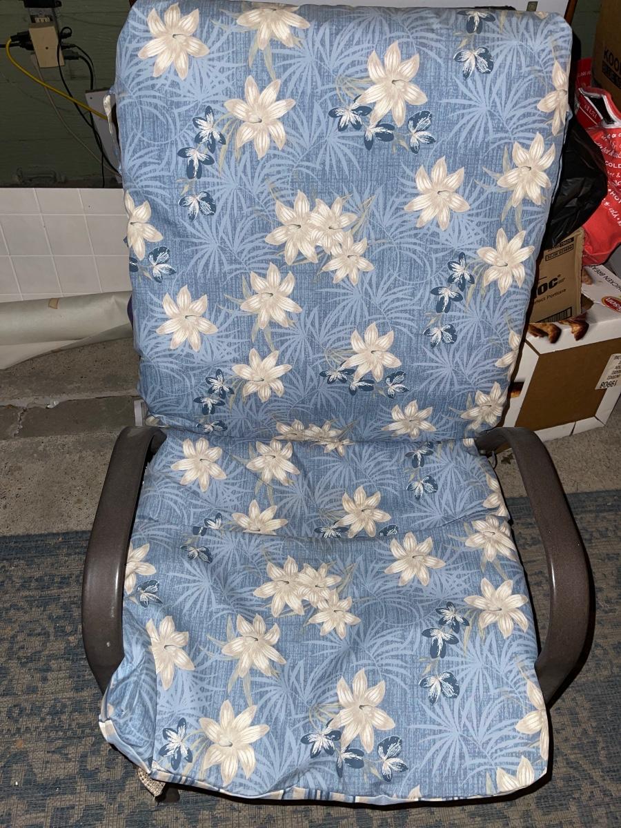 Comes with four reversible blue cushions