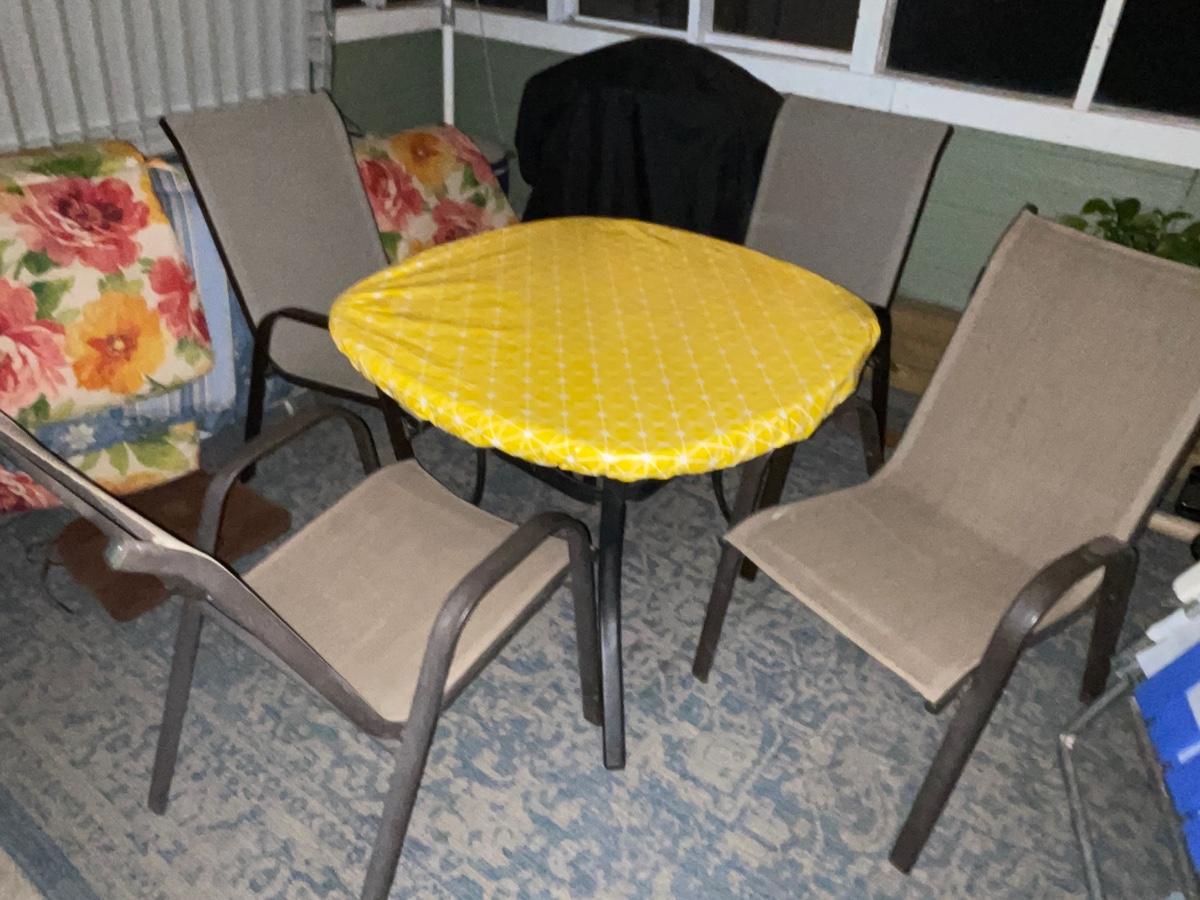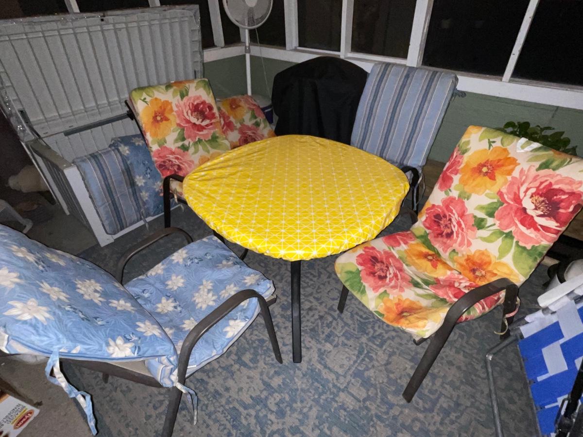 Comes with fitted heavyduty yellow tablecloth heavy