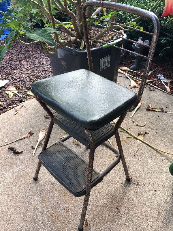 Vintage Costco Stool as-is. Please see all pictures for contents of the lot, the condition of items in the lot, and measurements of the items if taken. Thank you for looking and have fun bidding.