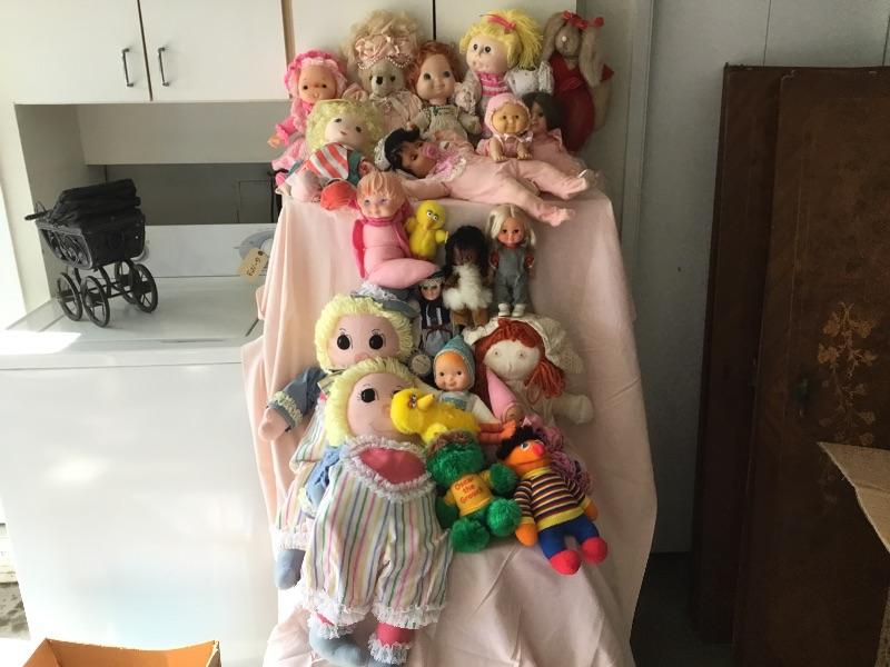 Large lot of vintage dolls number one. This lot includes all the dolls in the pictures and the baby buggy