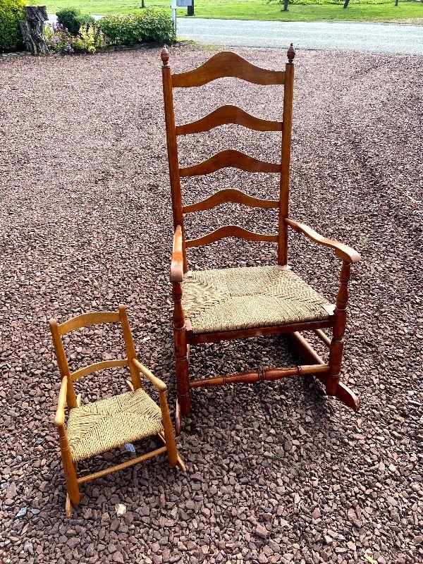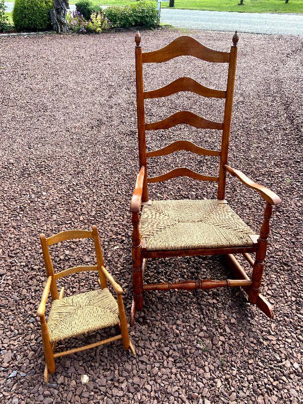 William Ware and Daniel Ware rockers; beautiful wood and rushing.