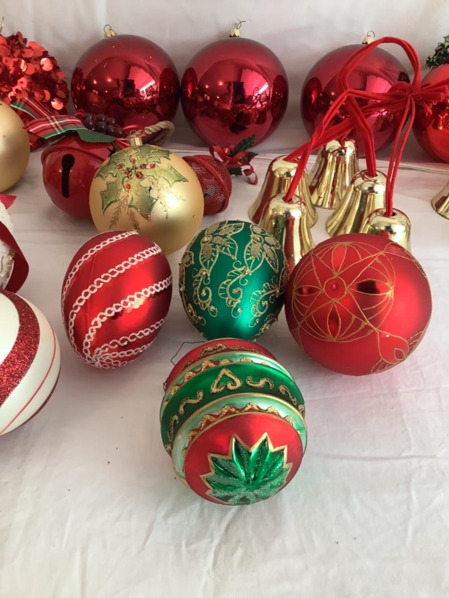 G1056 Large Lot of Red Glass Ornaments/ Bells