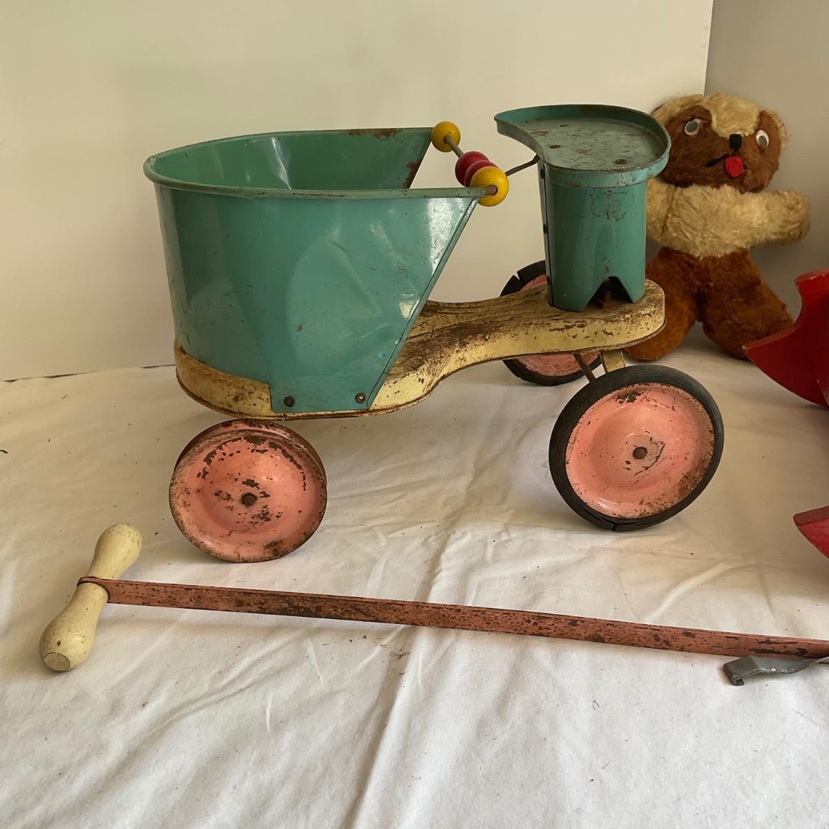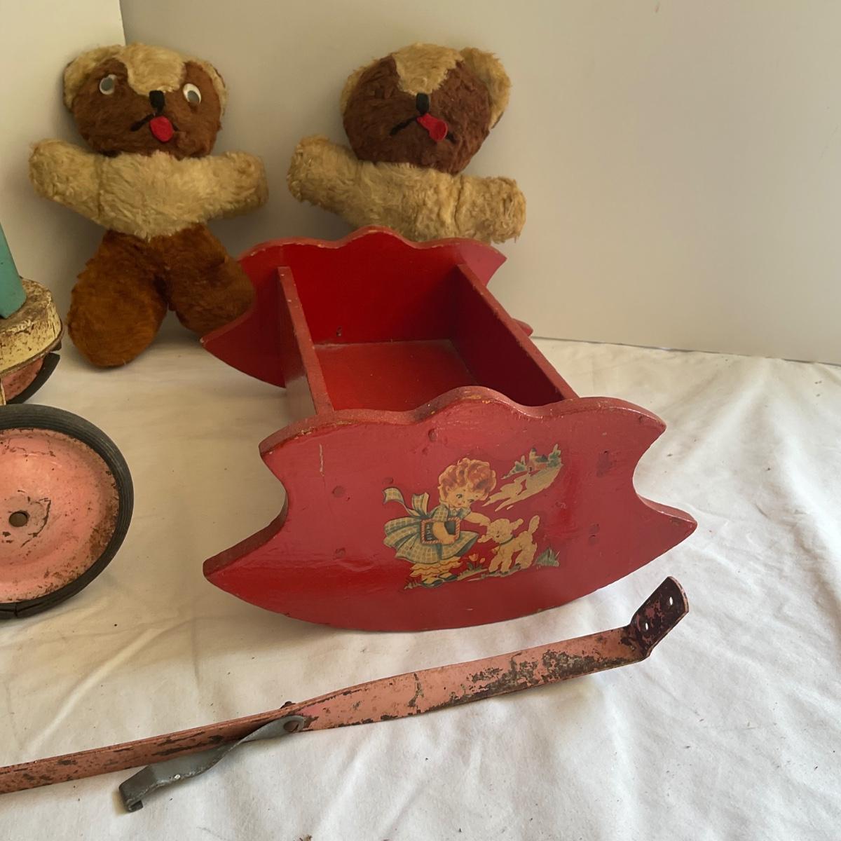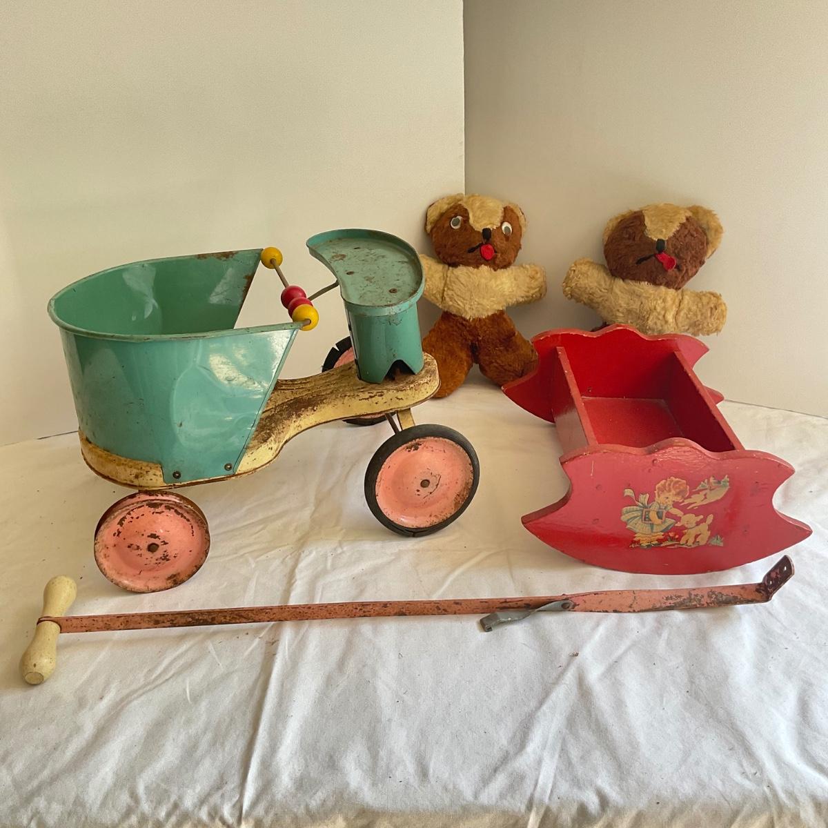 G1071 Vintage Child’s Doll Buggy with Cradle and Two Stuffed Animals