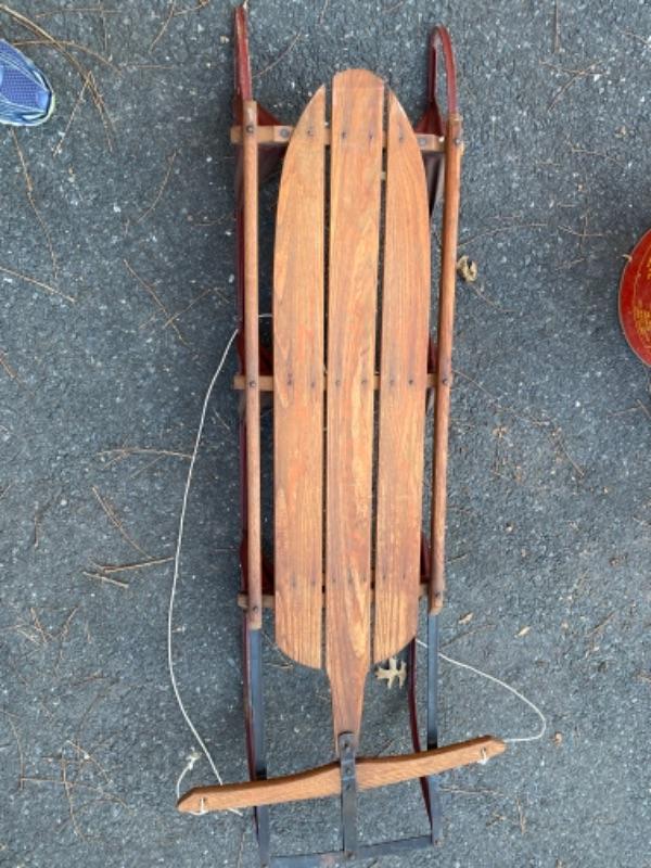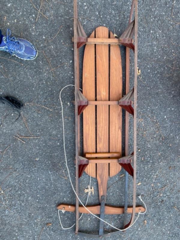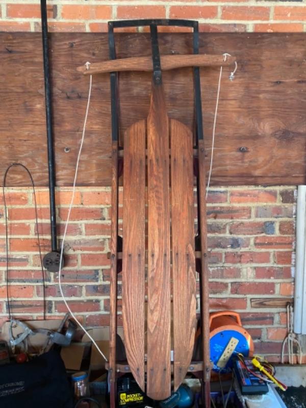 Vintage Wooden Lightning Guider sled measuring 58” long and 13” wide