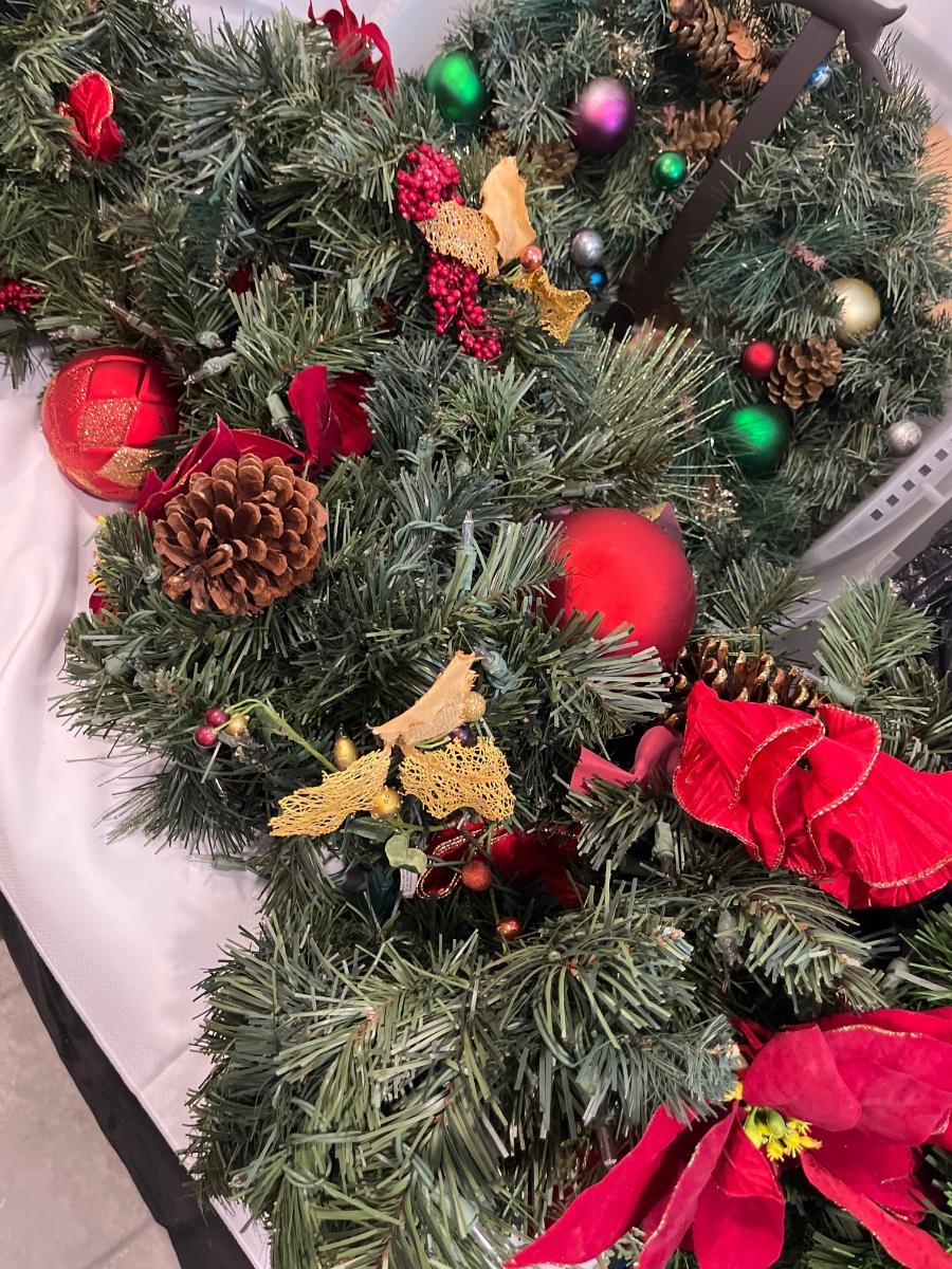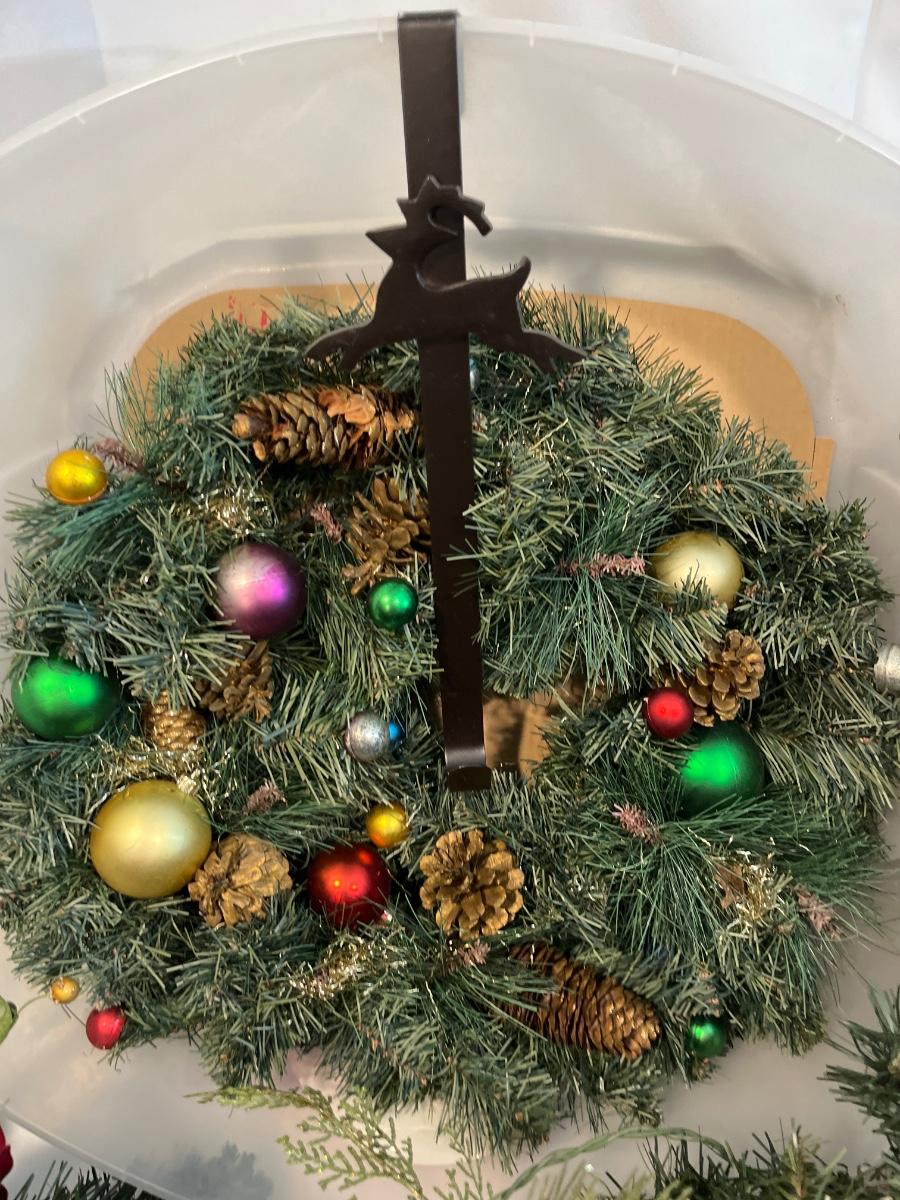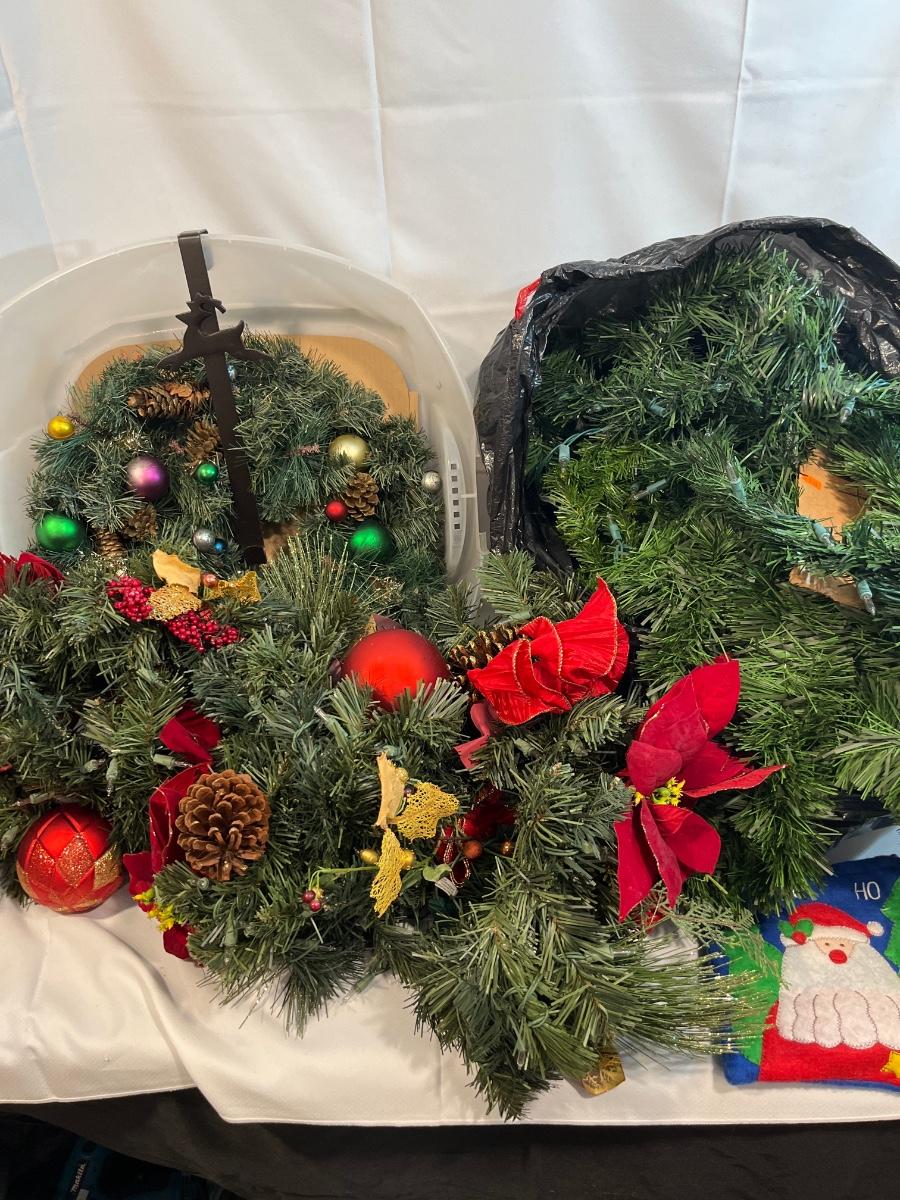 Decorated/lighted garland, wreath with hanger & case, trash bag if garland AND lighted garland