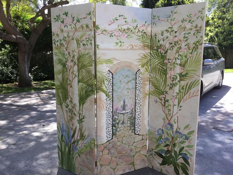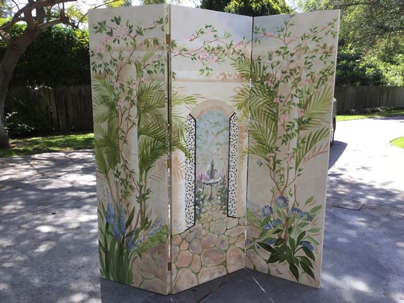 G-108 Three panel wooden hand painted mural