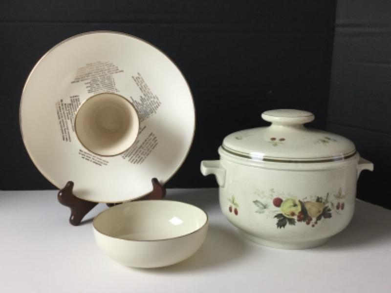 Lenox Bowl , Cordial China Chip and Dip Server, Royal Doulton, Lambethware Cornwall, Serving Dish w/ lid (has crack)
