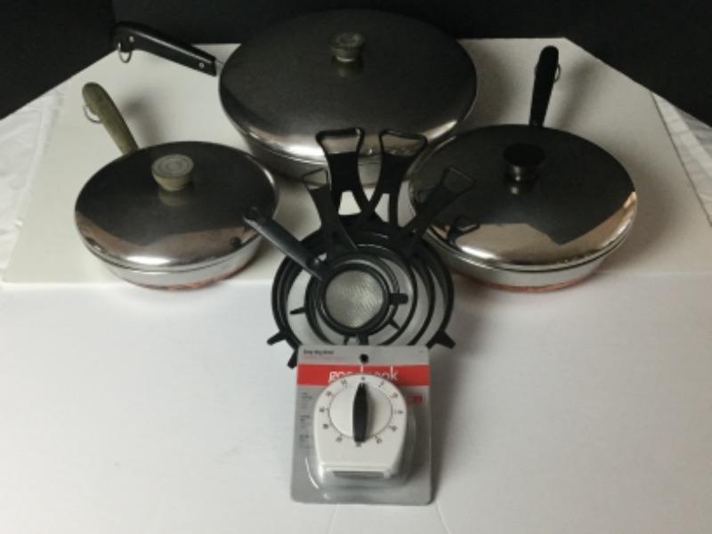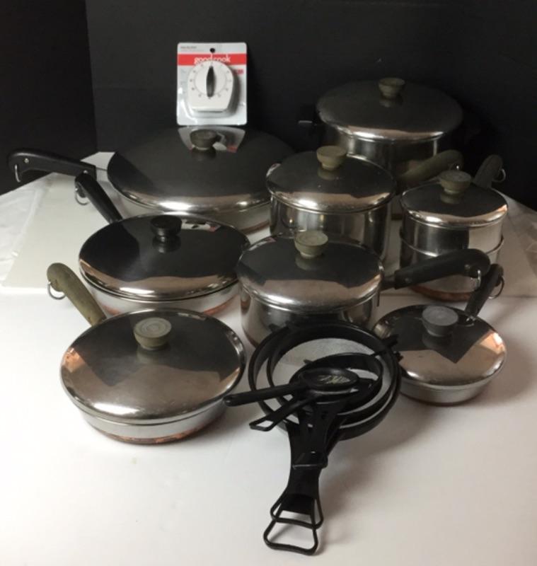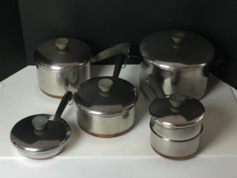 G1085: Lot of Revere ware Copper Clad Set of Eight