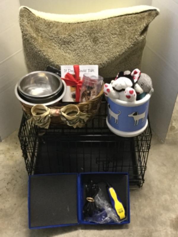 Dog Bed , Collapsible Bed Crate, Treat Jar , food and water bowls, leashes, Wahl Animal Grooming Clippers, Grooming Supplies and Toys ,