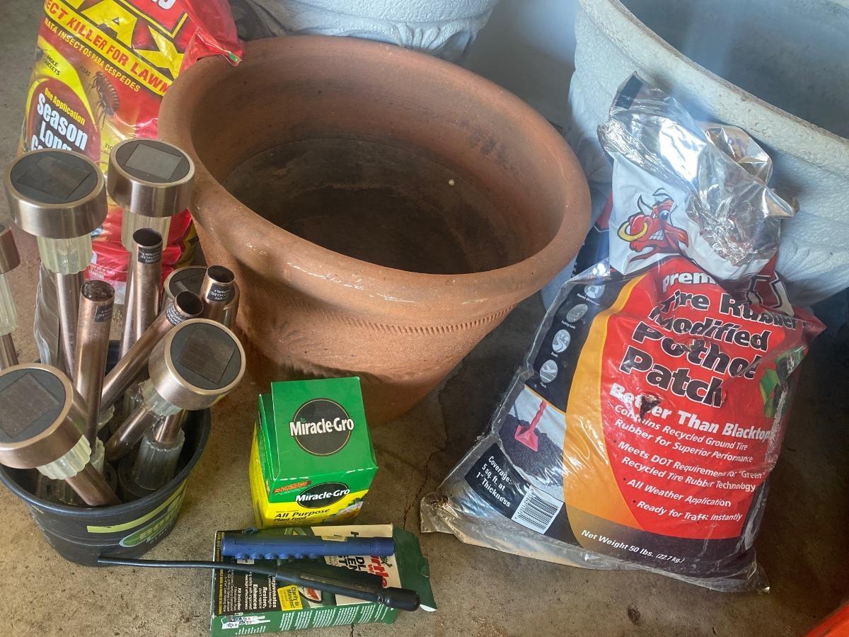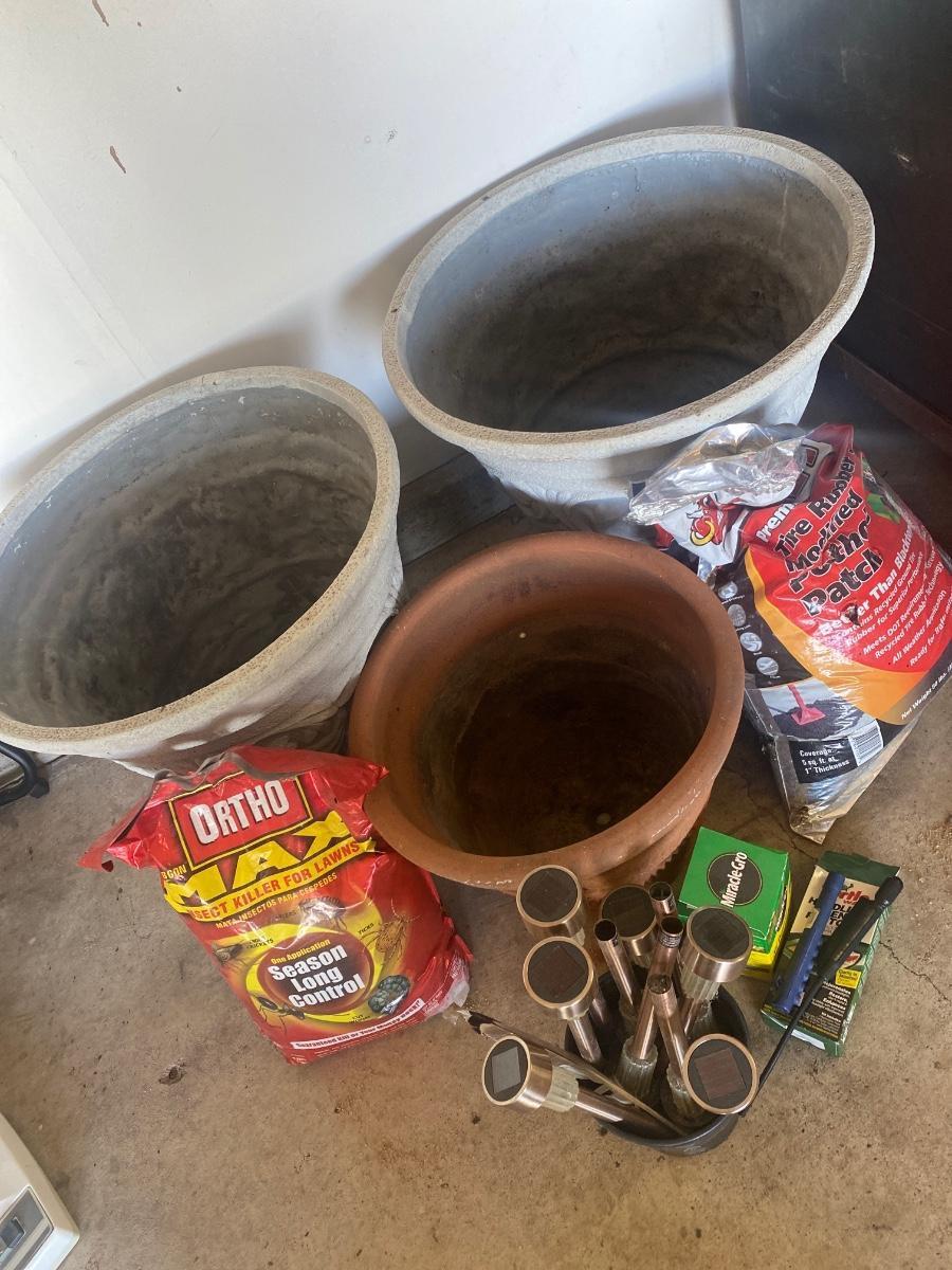 G11 3 large pots, and other gardening items