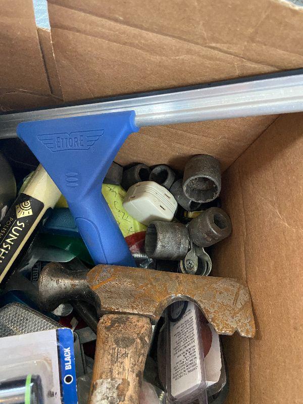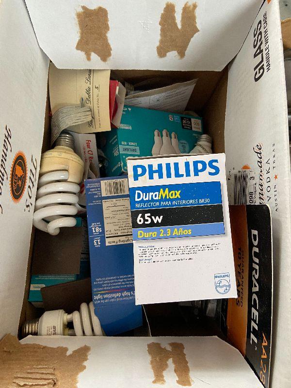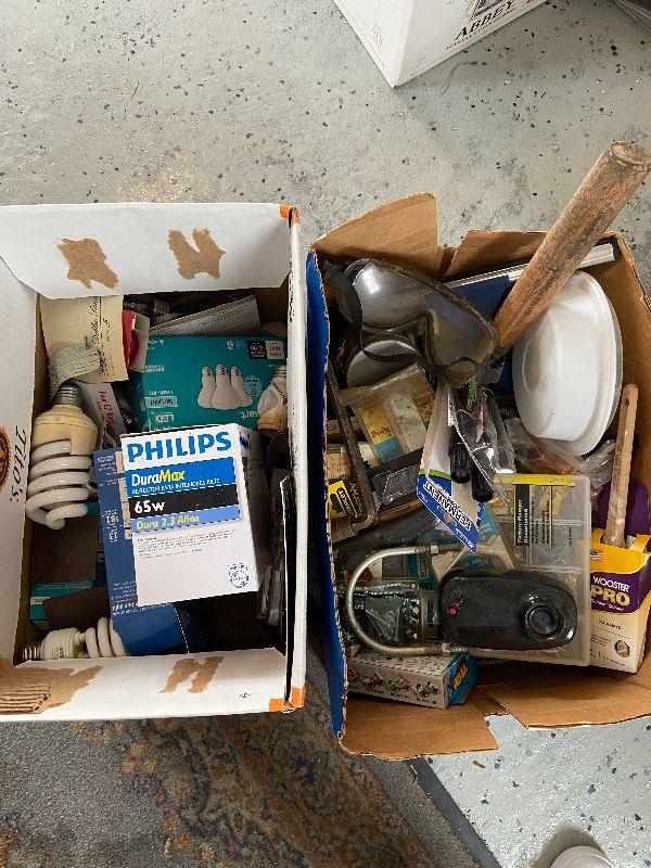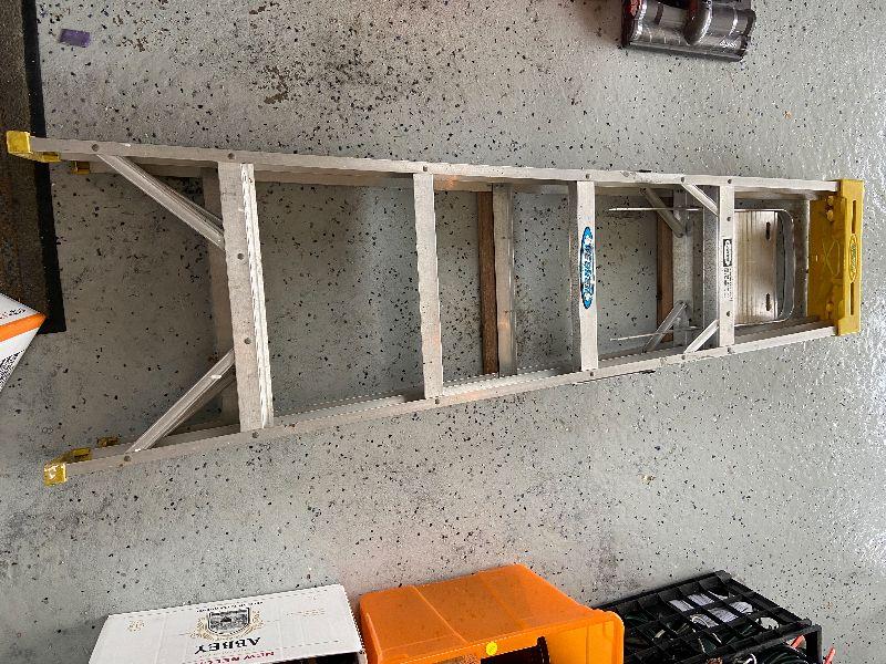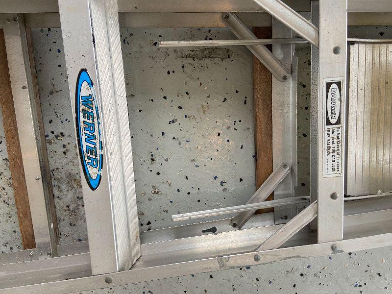 Werner ladder with lot of Various light bulbs and miscellaneous tools. Odds & ends and small accessories. Please see all pictures for exact contents of the lot, condition of the items, and if measurements if taken. Thank you for looking and have fun bidding.