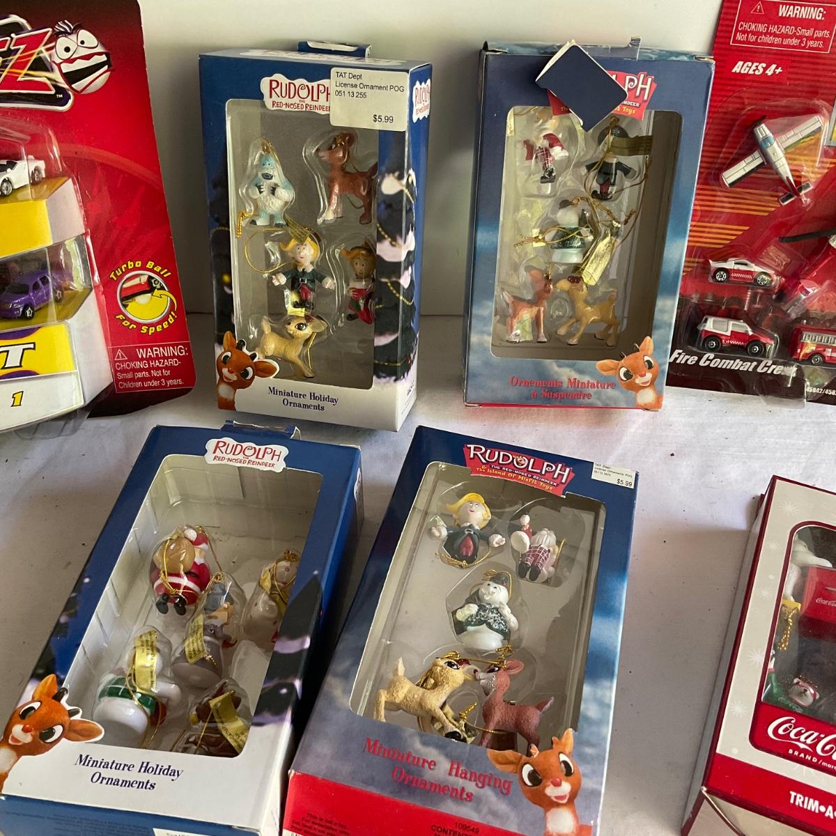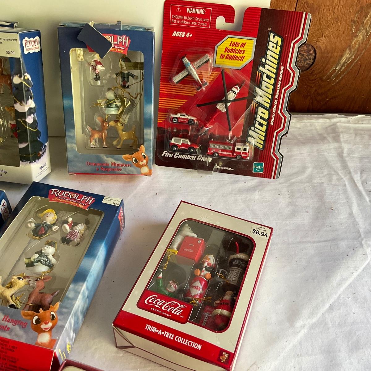 new in pkg, micro mini cars, Rudolph ornaments, Coca-Cola , and more