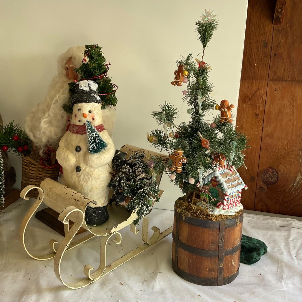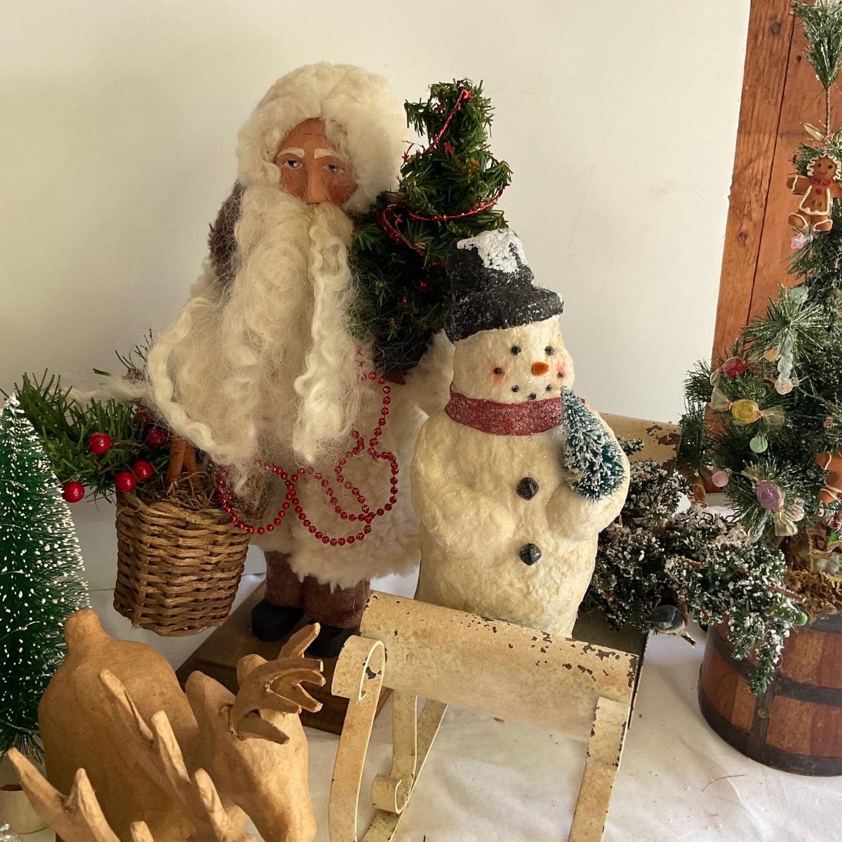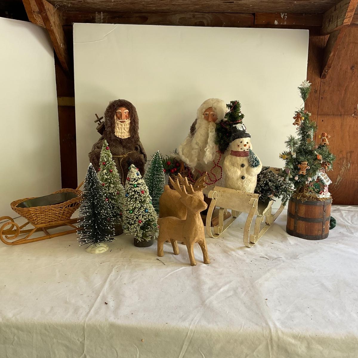 G1134 Lot of Santas, Bottle Brush Trees, Snowmen and more