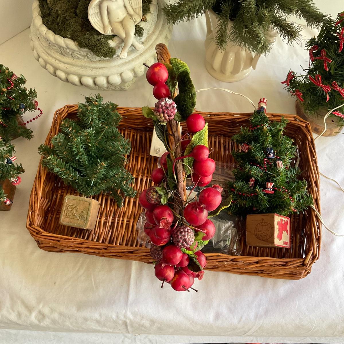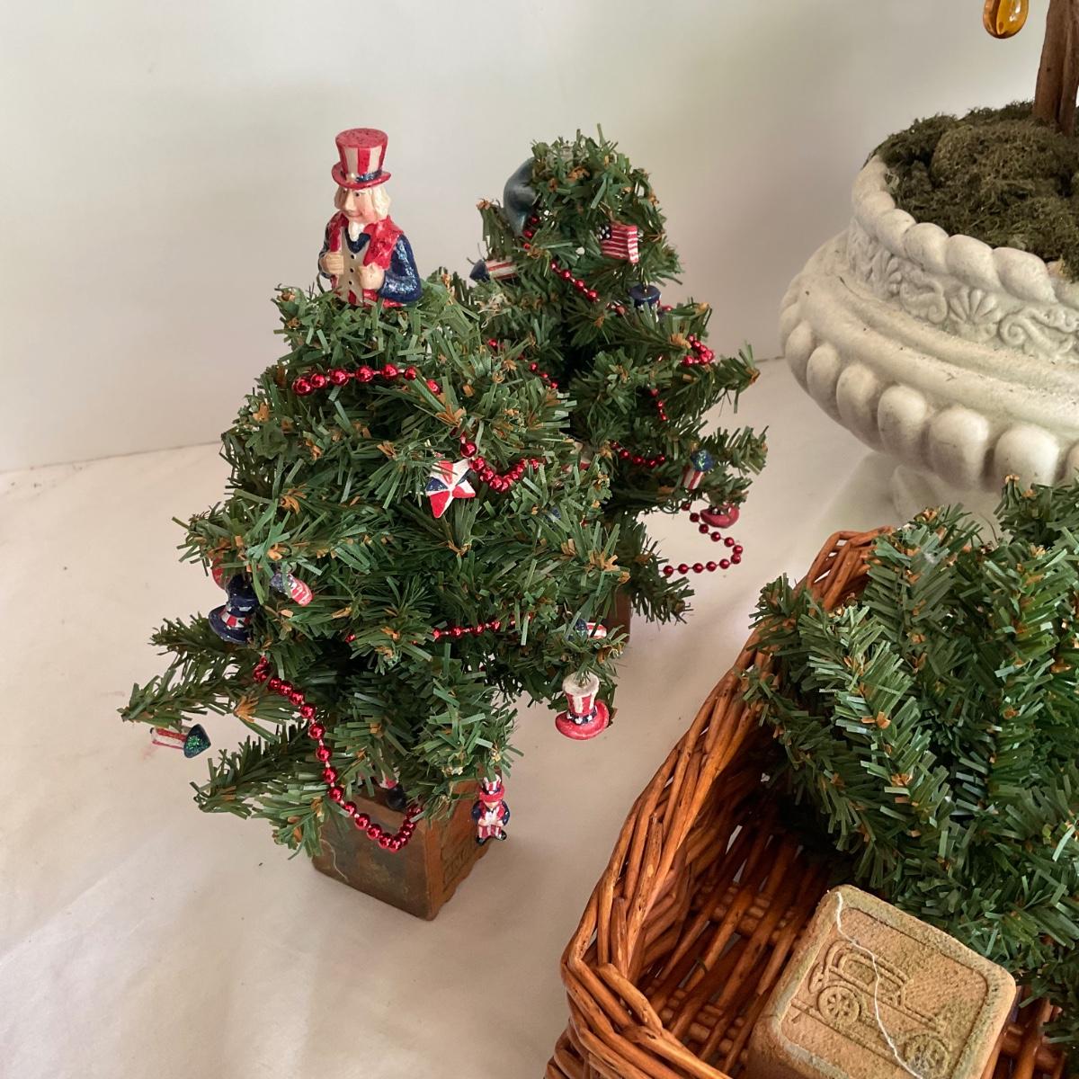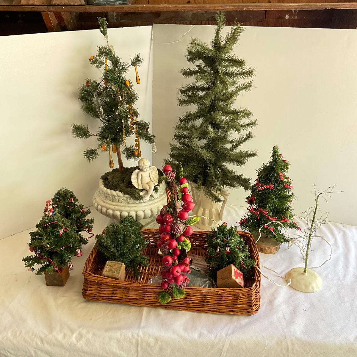G1144 Lot of Alphabet Trees and Cherub Planter with Glass Ornaments