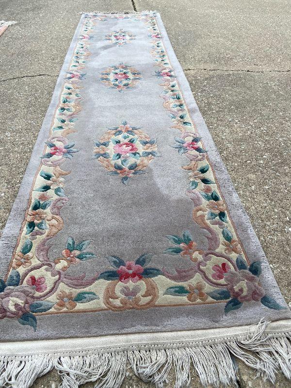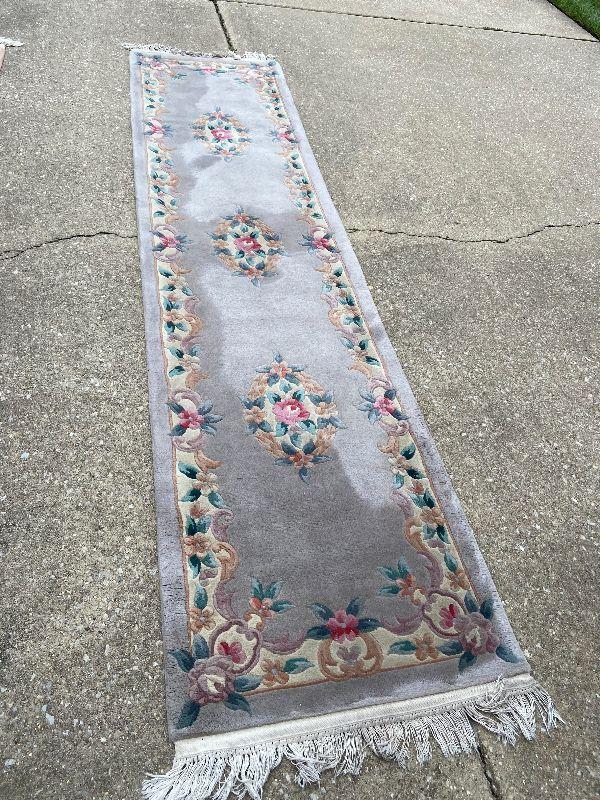Beautiful Rug in good condition. Grey with floral design. 10.5''x29'' Please see all pictures for exact contents of the lot, condition of the items, and if measurements if taken. Thank you for looking and have fun bidding.