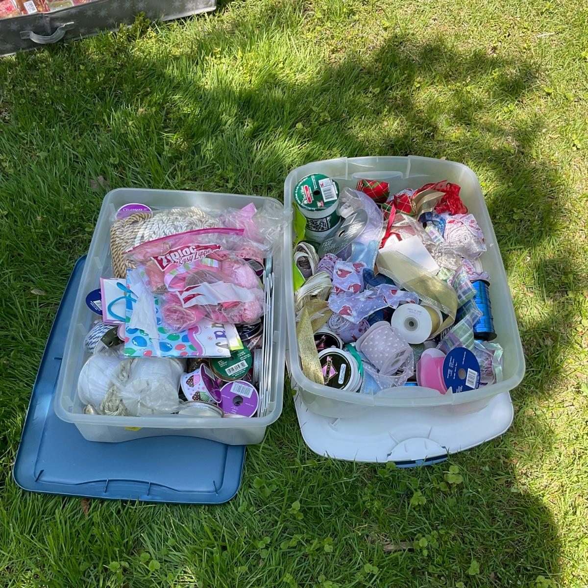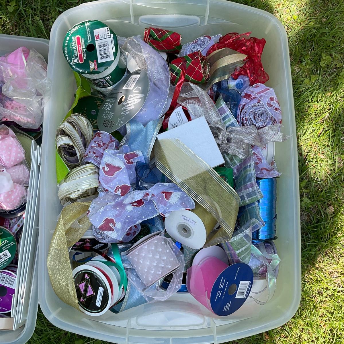G1160 Two Tubs of Various Ribbon for Gift Wrapping or Home Decor