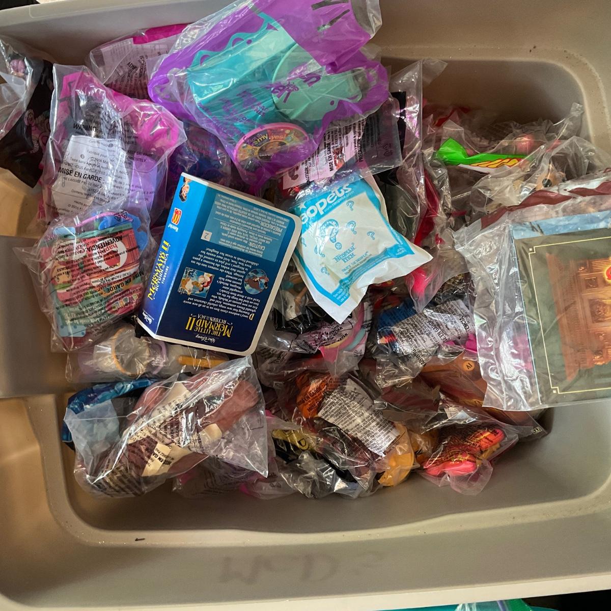 Entire large Tub of unopened Happy meal toys