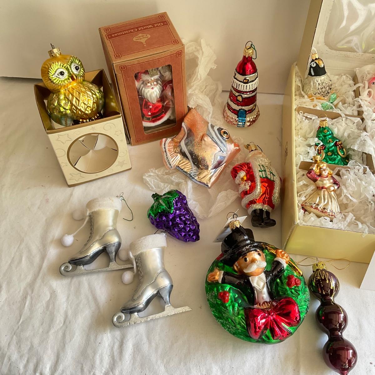 G1165 large Lot of Glass Figural Ornaments- Statue of Liberty , Owl and more