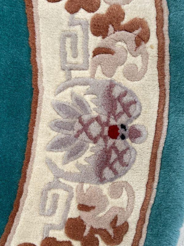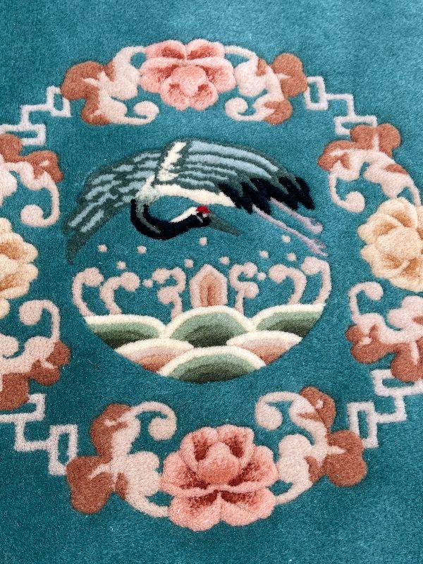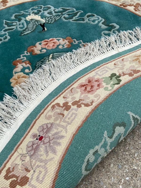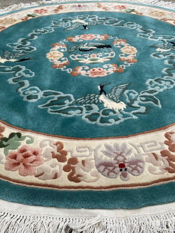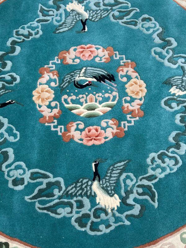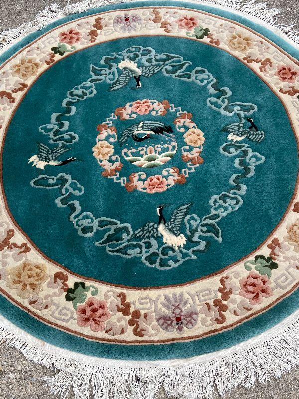 Vibrant color with beautiful bird design round rug. Please see all pictures for exact contents of the lot, condition of the items, and if measurements if taken. Thank you for looking and have fun bidding.