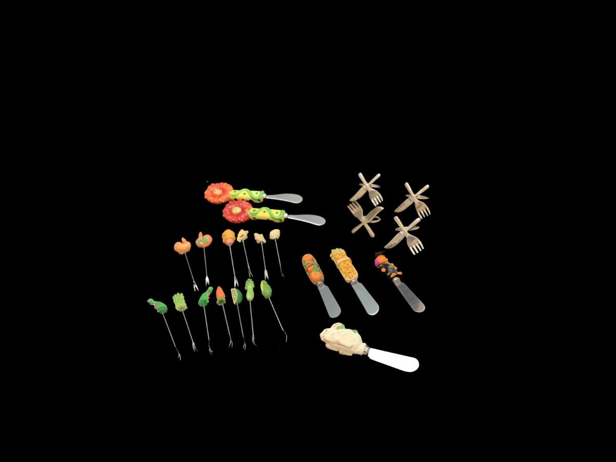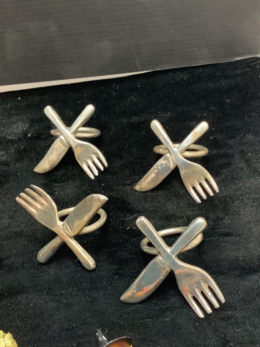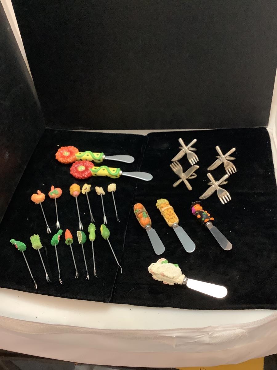 G126 Lot fo Serving Forks, Butter Knives, Napkin Holder