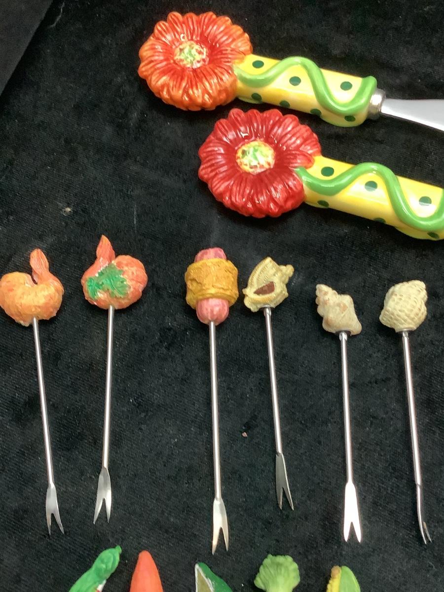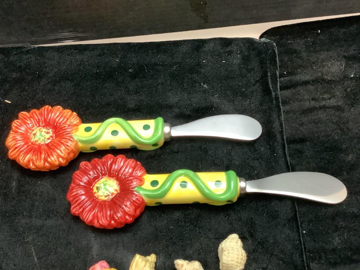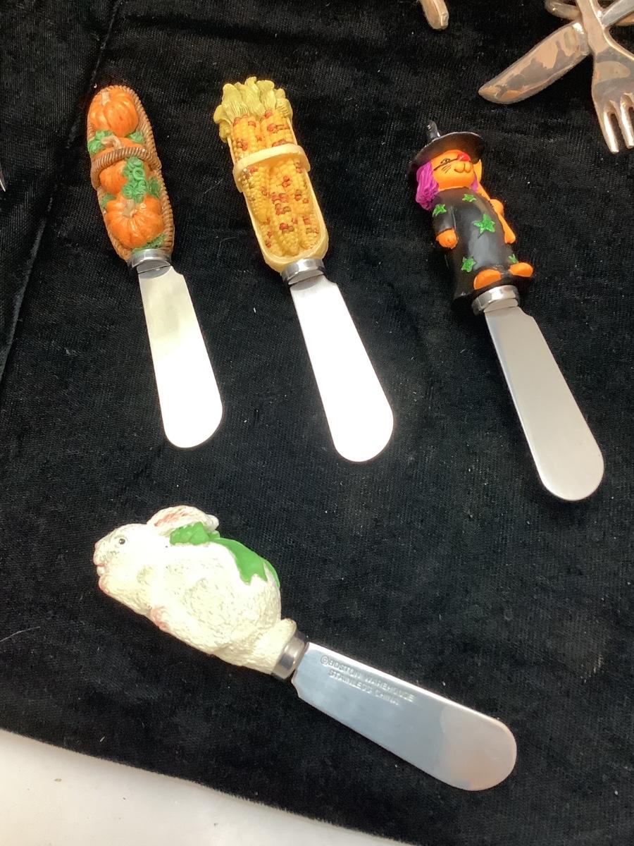 G126 Lot fo Serving Forks, Butter Knives, Napkin Holder