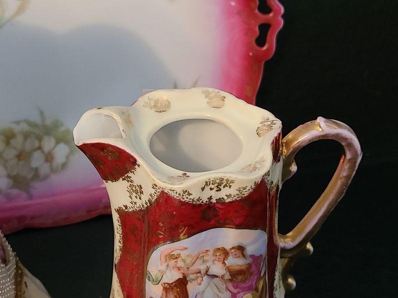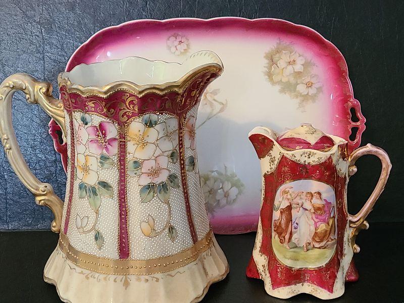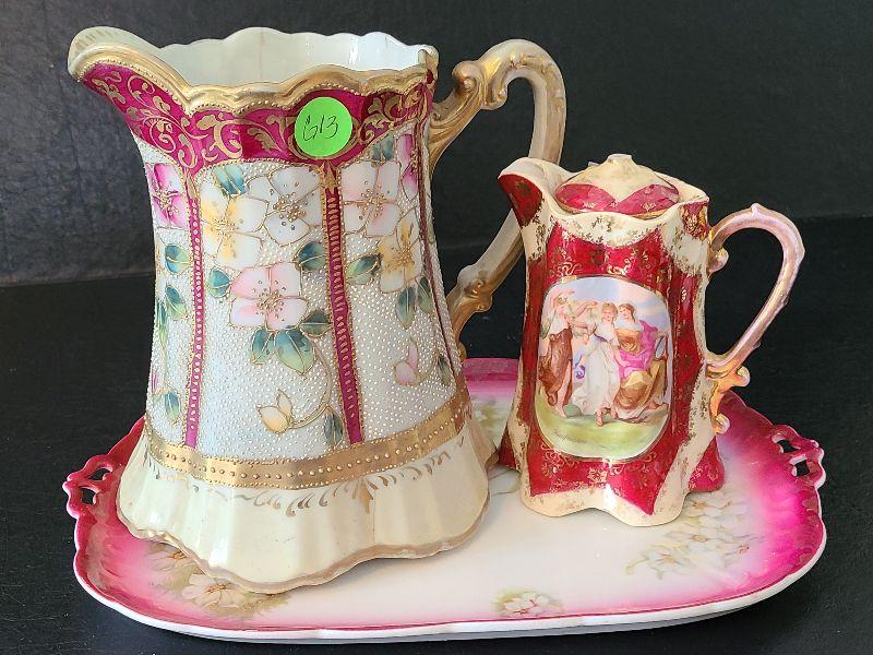 G13: Lot Of Hand Painted Decorative Pitchers & Tray.